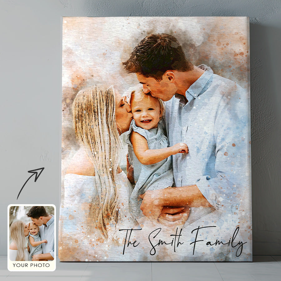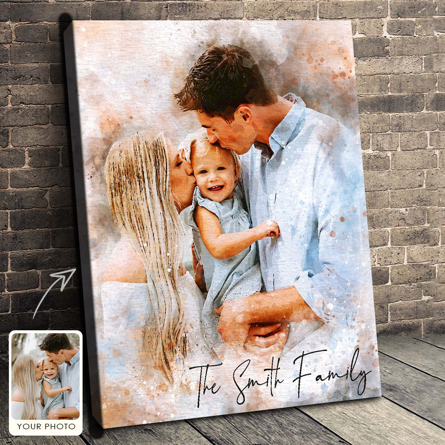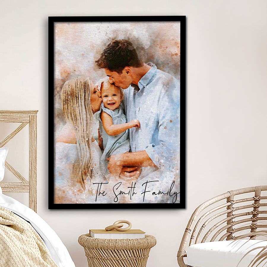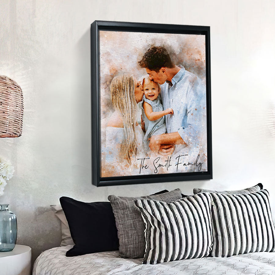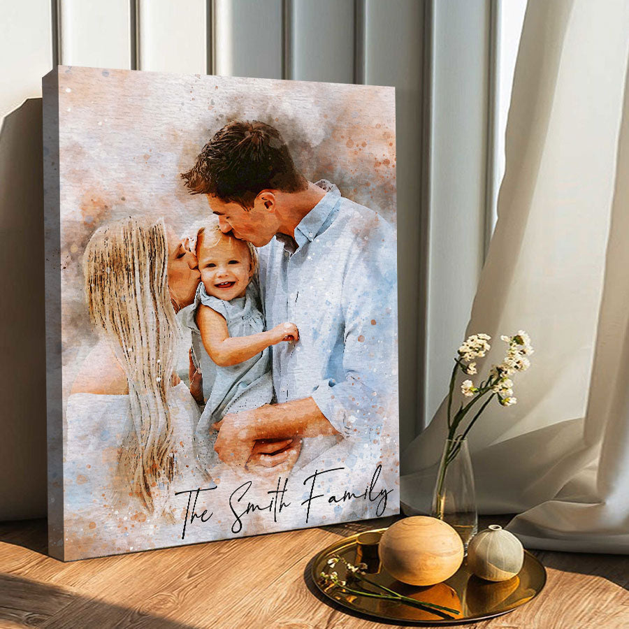 Our personalized canvas décor makes the perfect personalised first fathers day gifts | custom watercolor family portrait from photo. For a new father, nothing compares to the joy, love, and responsibility that comes with embracing his new role.