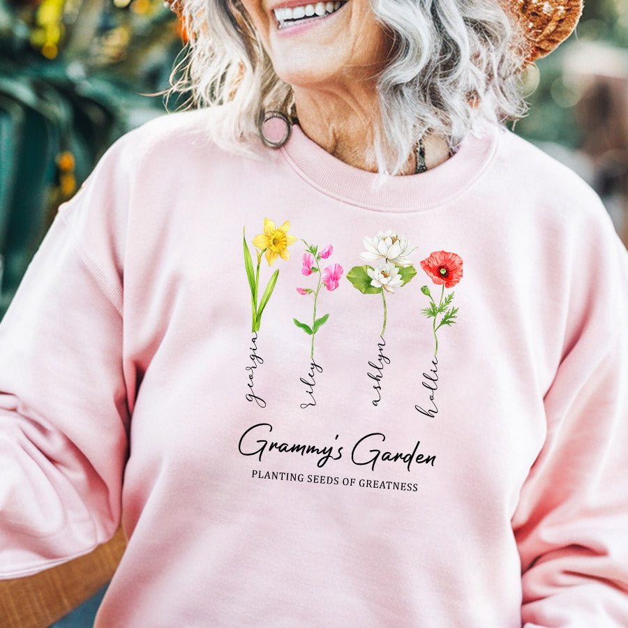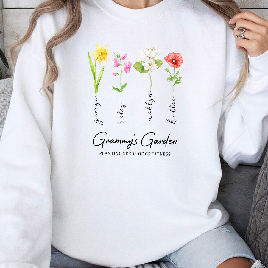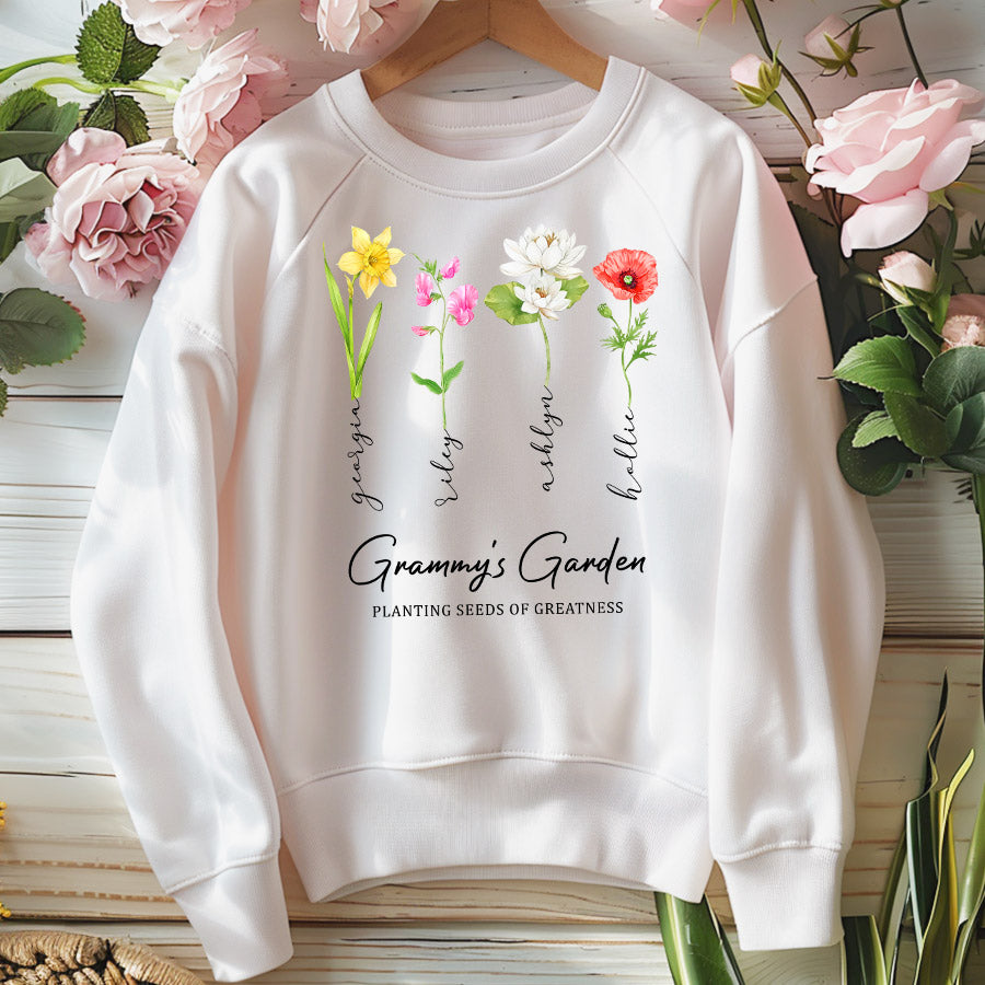 Grandma Gifts Personalized | Custom Grandma’S Garden Mothers Day Gift | Custom Grandma Sweatshirt With Grandkids Name | Birth Flower Garden