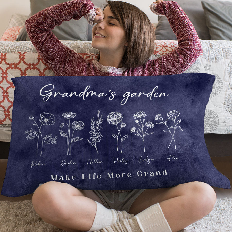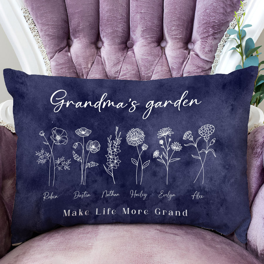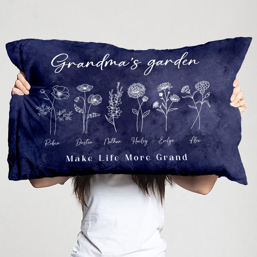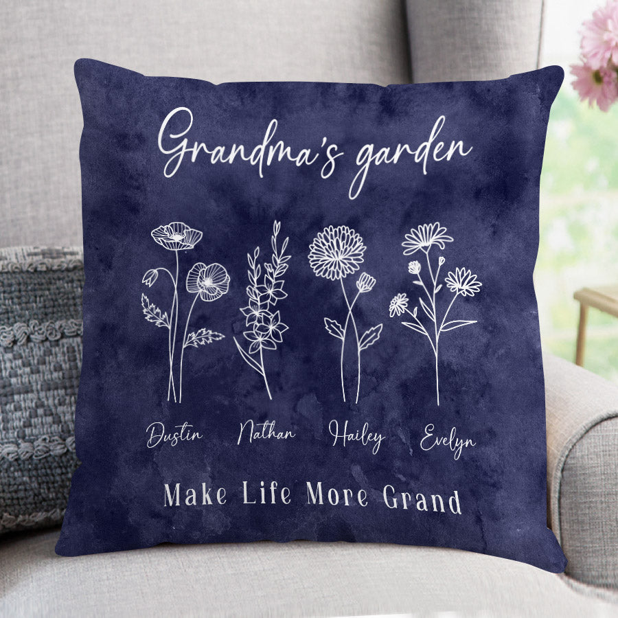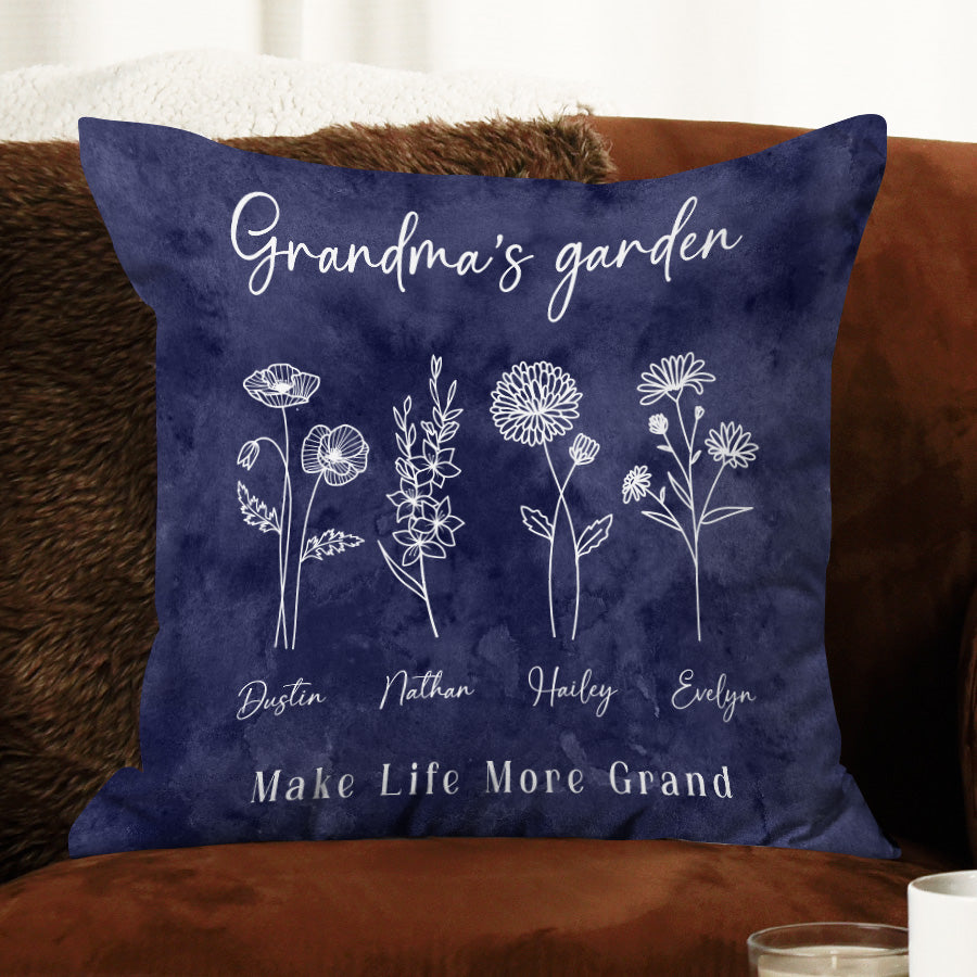 Looking for the perfect personalised mothers day gifts for grandma | personalized grandma gifts with names to express your love and appreciation to Grandma this Mother's Day? Our pillow is just what you need! This extraordinary grandma garden gift is more than just a piece of art; it's a heartfelt tribute to the incredible woman who has made a lasting impact on your life. This delightful and cozy pillow is more than just a decorative piece; it's a heartfelt symbol of the love and warmth you have for your beloved Grandma.