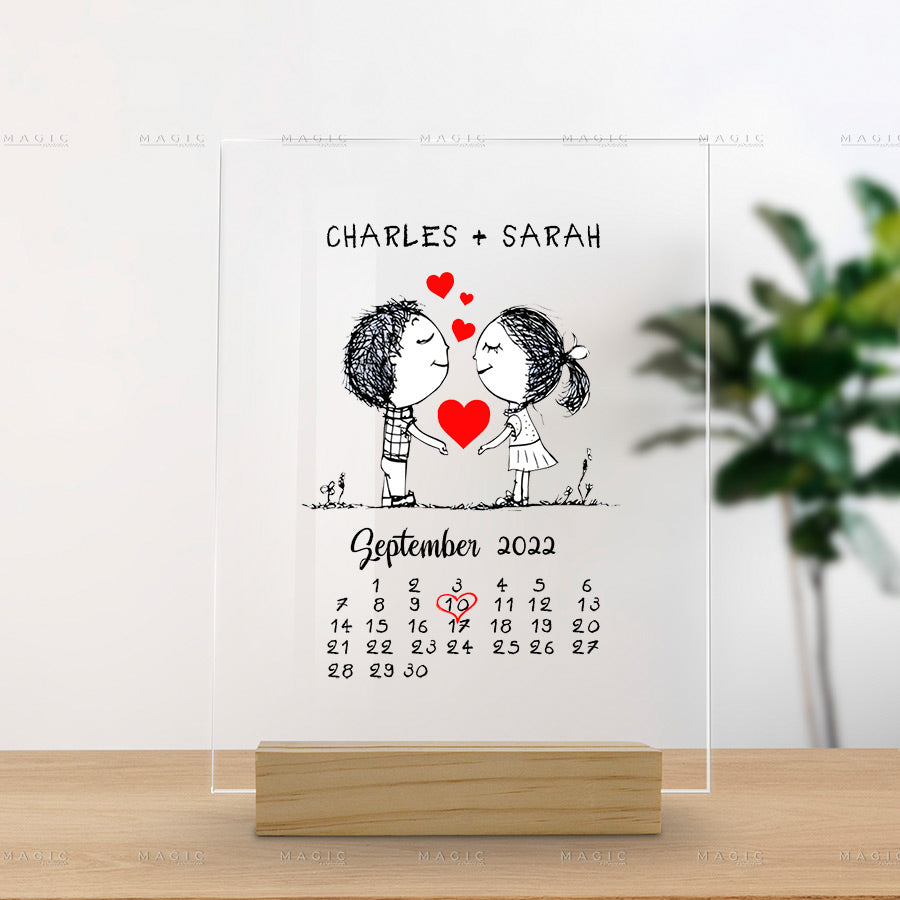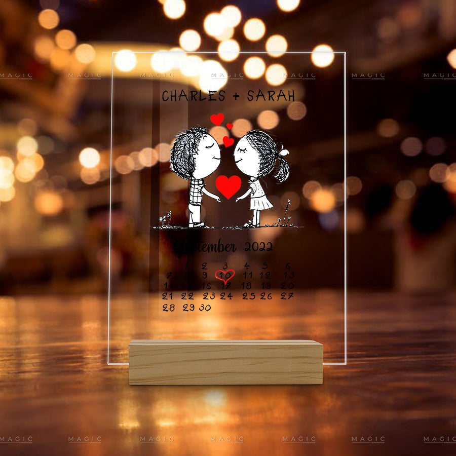 Personalized Valentine Gifts | Hand Shape Custom Acrylic Plaque With Wooden Sole for Couples