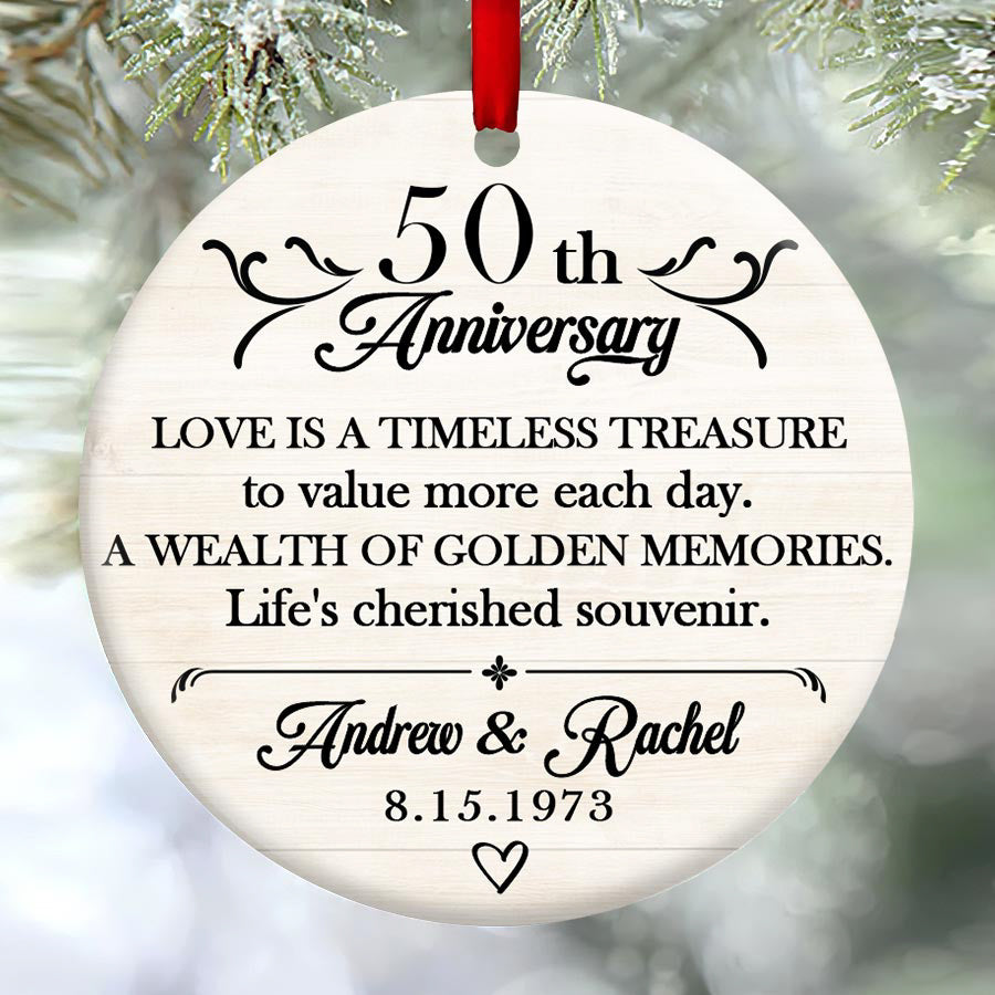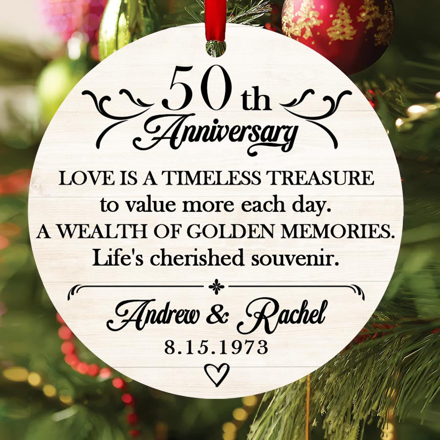 This personalized 50th anniversary gifts will allow you to commemorate your golden wedding anniversary for years to come, renewing the feelings of love, appreciation, and joy that fill your heart today. Shop now for a meaningful 50th wedding anniversary ornament to celebrate this momentous occasion together.