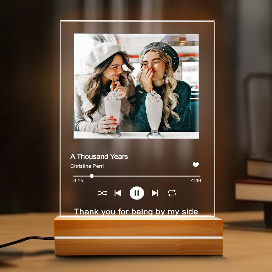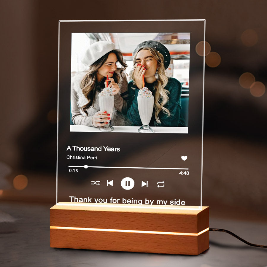 Imagine their delight as they unwrap a personalized best friend gifts | custom music song plaque night light featuring: Your most cherished photo together, immortalized in crystal-clear acrylic. Whether it's a silly selfie, a glamorous night out, or a heartwarming candid moment, this plaque will bring that memory to life every time they look at it.