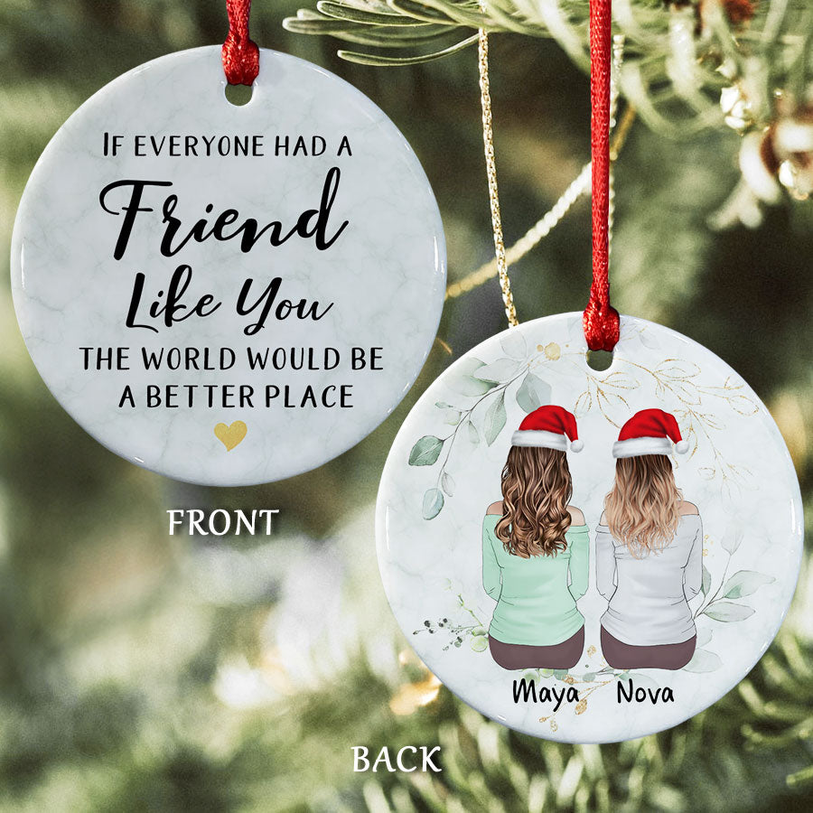 With personalized best friend ornaments | friends xmas ornament, you can celebrate and remember your special friendships each Christmas. These personalized ornaments allow you to showcase inside jokes, inside memories, or simply your friends' names for all to see on your holiday tree. Bringing smiles to your face each time you spot their ornament hanging among the branches. This ornament is a perfect Best Friends Christmas Ornaments to show your best friend how much they mean to you. Give them this Personalized Christmas Ornaments will definitely brighten their whole holiday with so much love than ever.