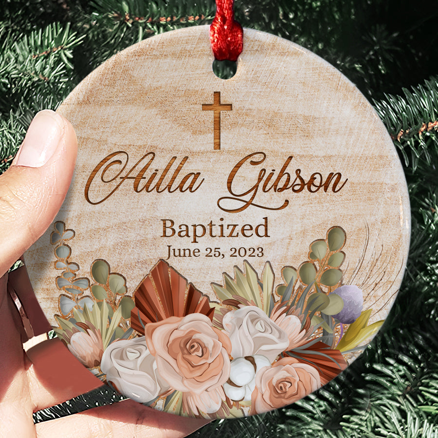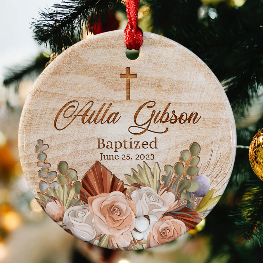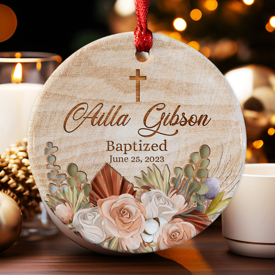 Christening Ornaments | Personalized Cross For Baptism Gift For Boy | Baptism Gift For Baby Girl | Ceramic Ornament