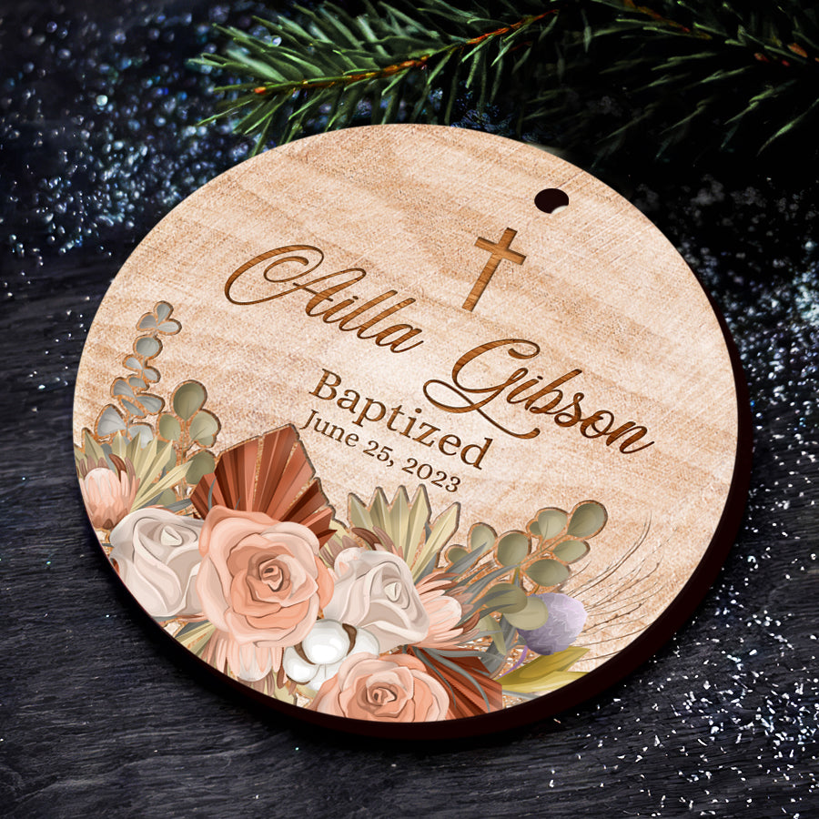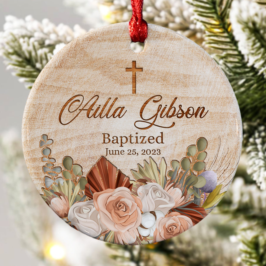 Rather than a present that gets put away, personalized christening ornaments | baptism cross for girl ornament preserves this momentous occasion in a truly touching display. Family and friends will appreciate the sentimental value of every yuletide season for generations to come. It's a heartfelt way for godparents to bless the child's faith journey while creating lasting Christmas memories together.