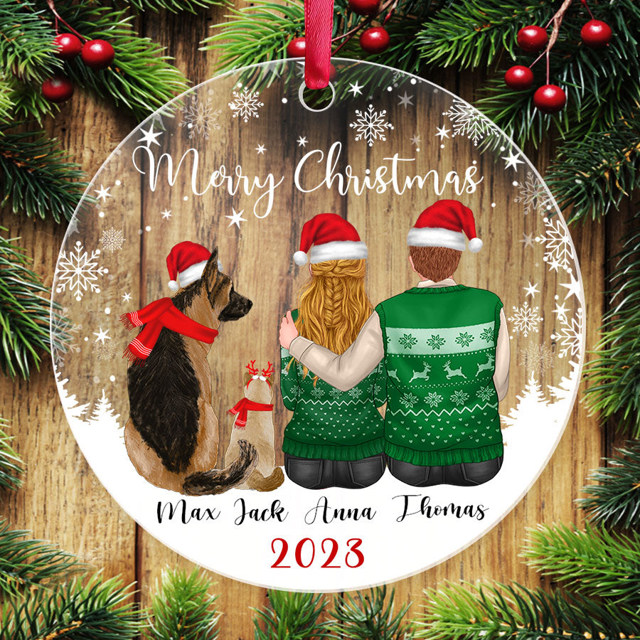 Couple And Dog Ornament | Couple With 2 Dogs Ornament | Personalized Ornaments With Names | Acrylic Circle Ornaments