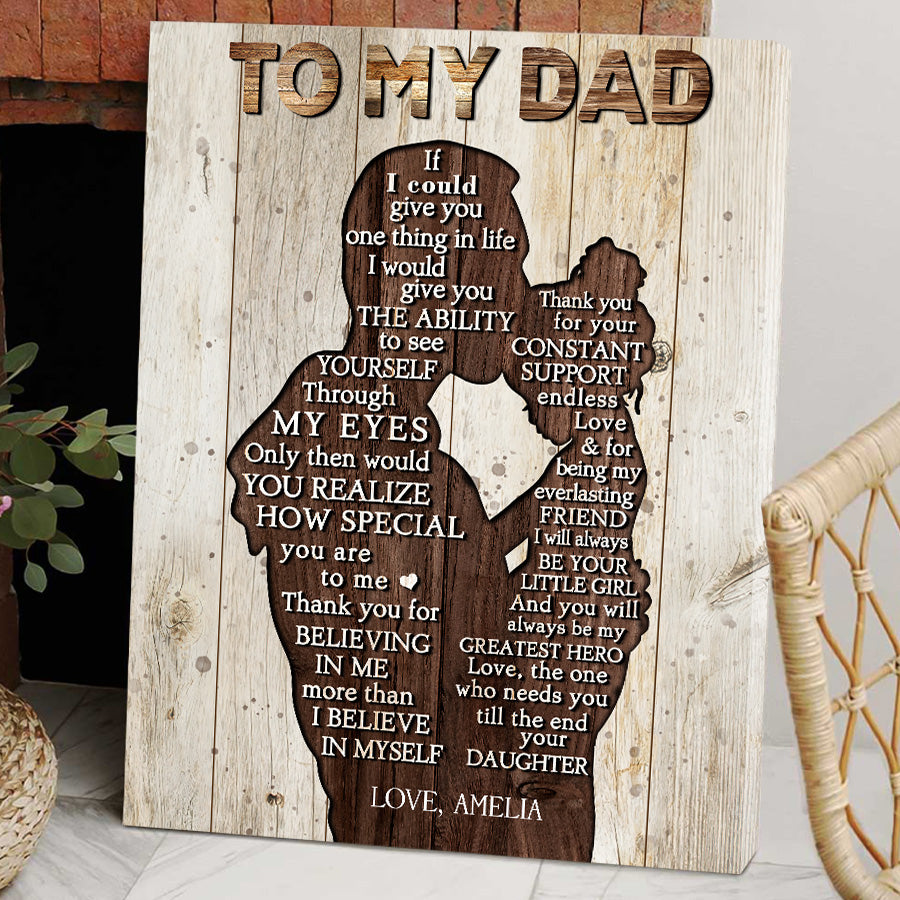 The crisp resolution of this personalized dad gifts from daughter | fathers day canvas allows you to select photos with fine details that will be preserved for years to come. But more than just pictures, this gift conveys the deep love, gratitude and respect you feel for everything Dad has done for you. On Father's Day, a day set aside to honor fatherhood and all the hard work dads do every day, this personalized canvas is a thoughtful way to let him know how much you value him and celebrate all he has provided throughout the years.