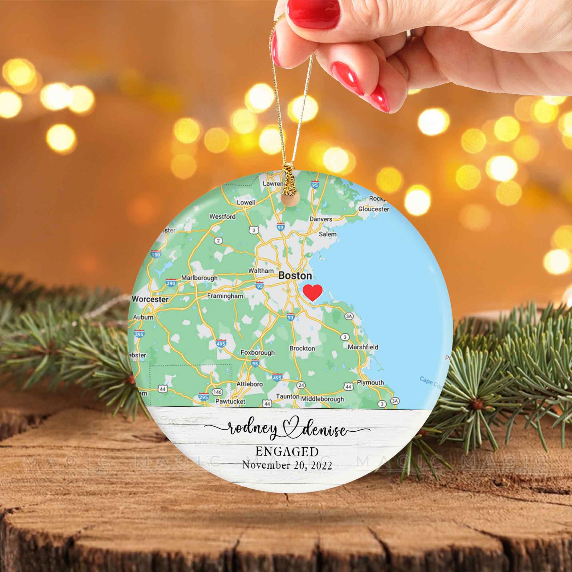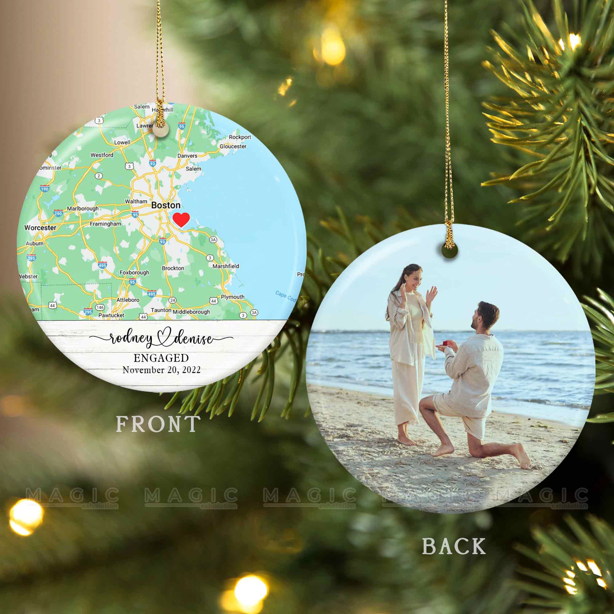 Personalized Engaged Ornament, Custom Map Wedding Ornaments, First Engaged Christmas Ornament 2023, First Christmas Gift for Boyfriend