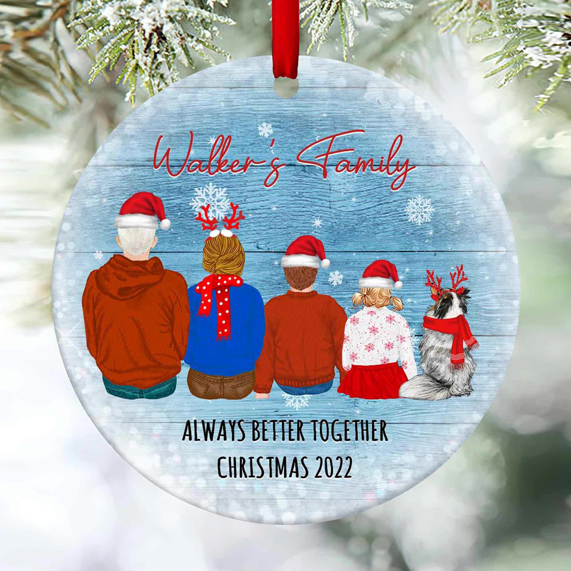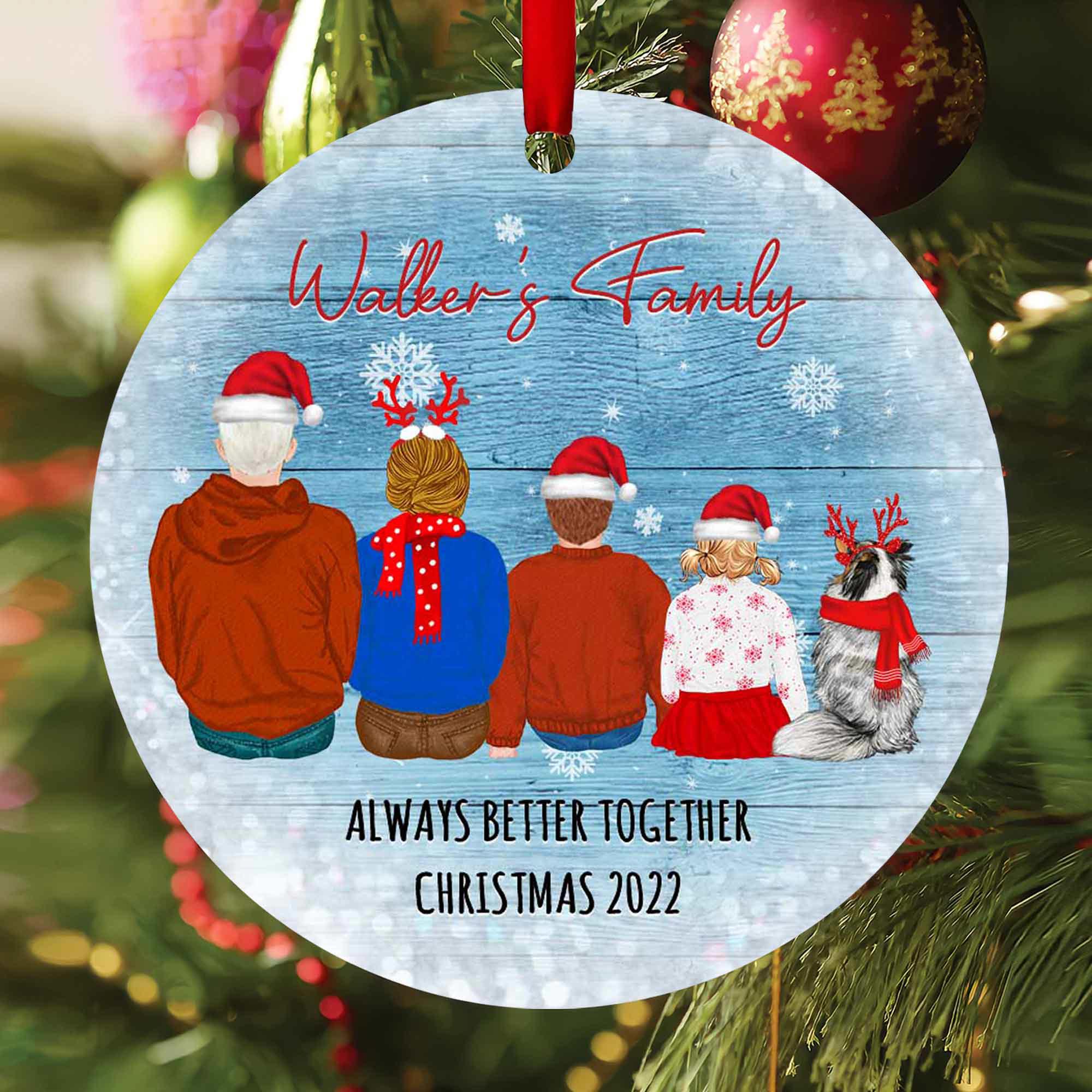 Christmas Family Ornaments, Personalized Family of 4 with 2 Dogs Ornament, 2023 Christmas Ornaments with Names on Them, Family Decorations