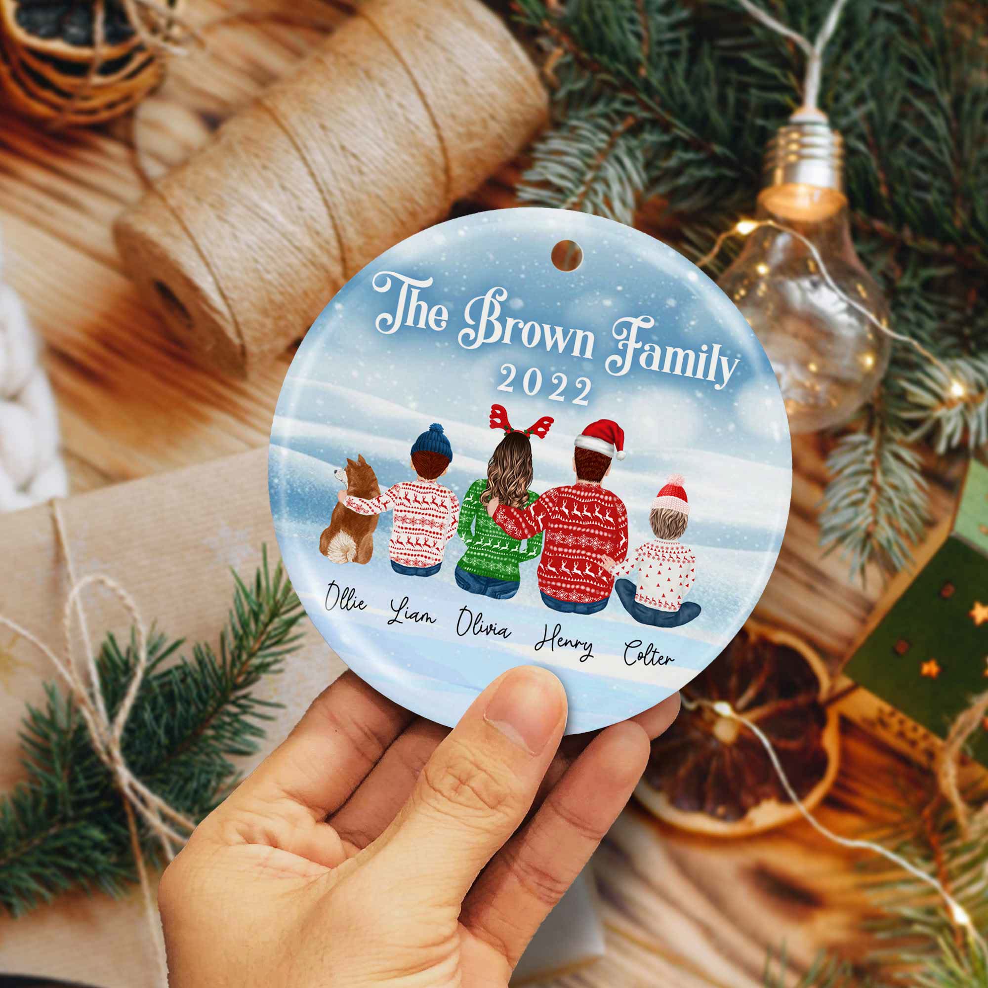 Personalized Family Christmas Ornament, Family of 4 with Dog Ornament, Custom Clipart Family Christmas Ornaments with Pets, Ornaments Gifts