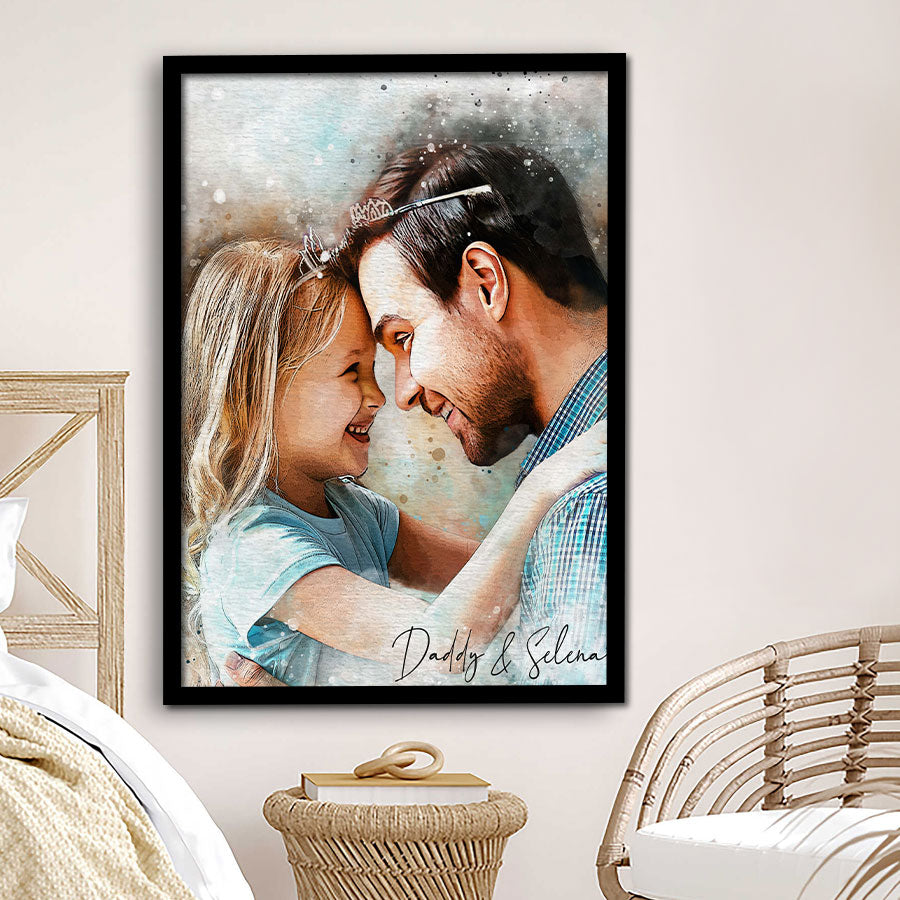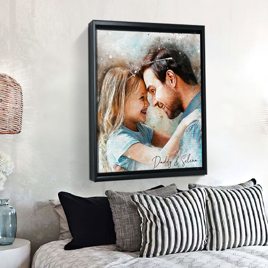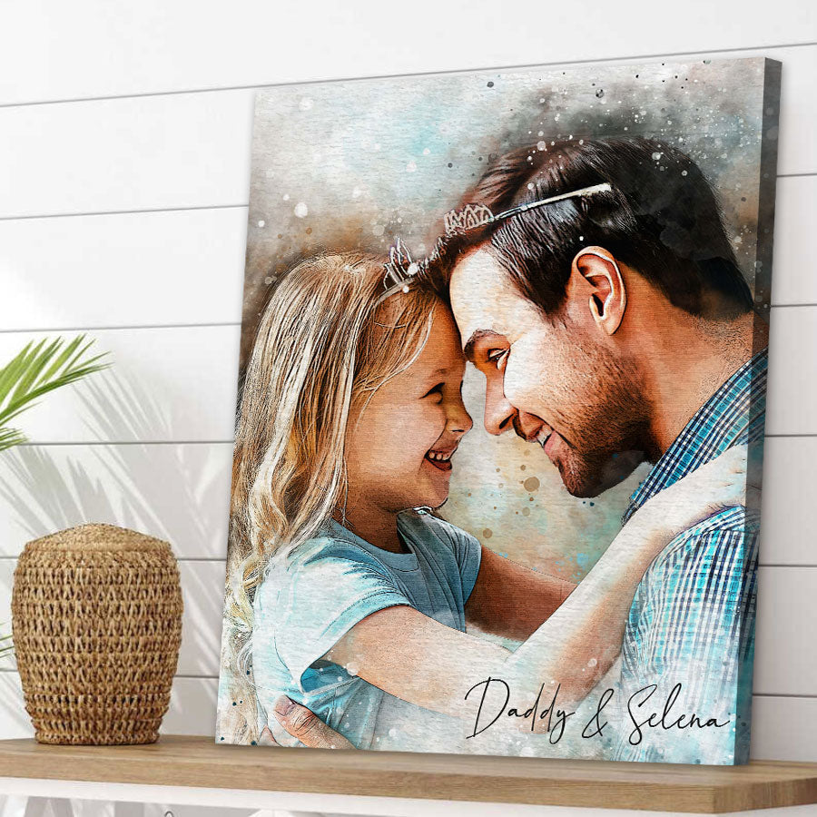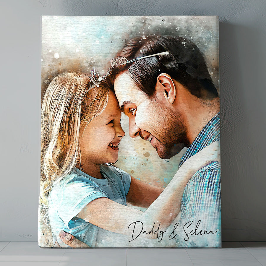 Treat the new dad in your life to personalized father daughter gifts | custom watercolor dad portrait canvas that commemorates the baby's arrival and his first Father's Day. Our personalized photo canvas is sure to bring a smile seeing little ones grow up before their eyes. Customize it FREE now - he will love displaying this treasured memory for many years to come.