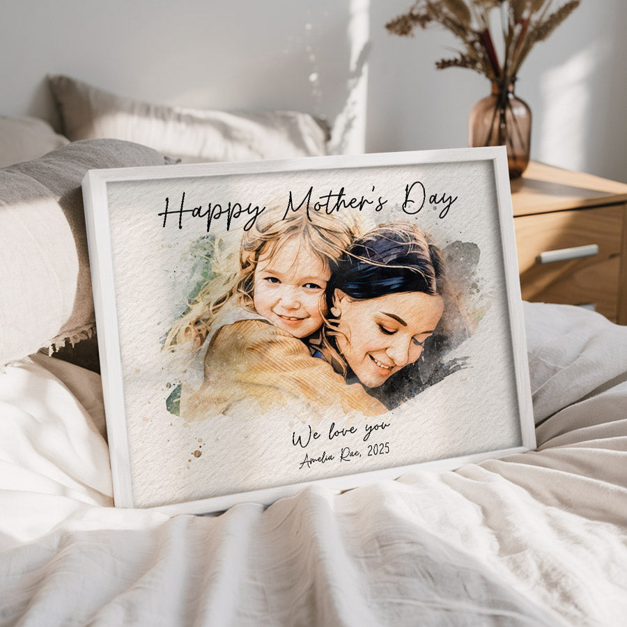 1st Mothers Day Gift | First Mothers Day Canvas | Watercolor Photo Canvas For 1St Mother'S Day