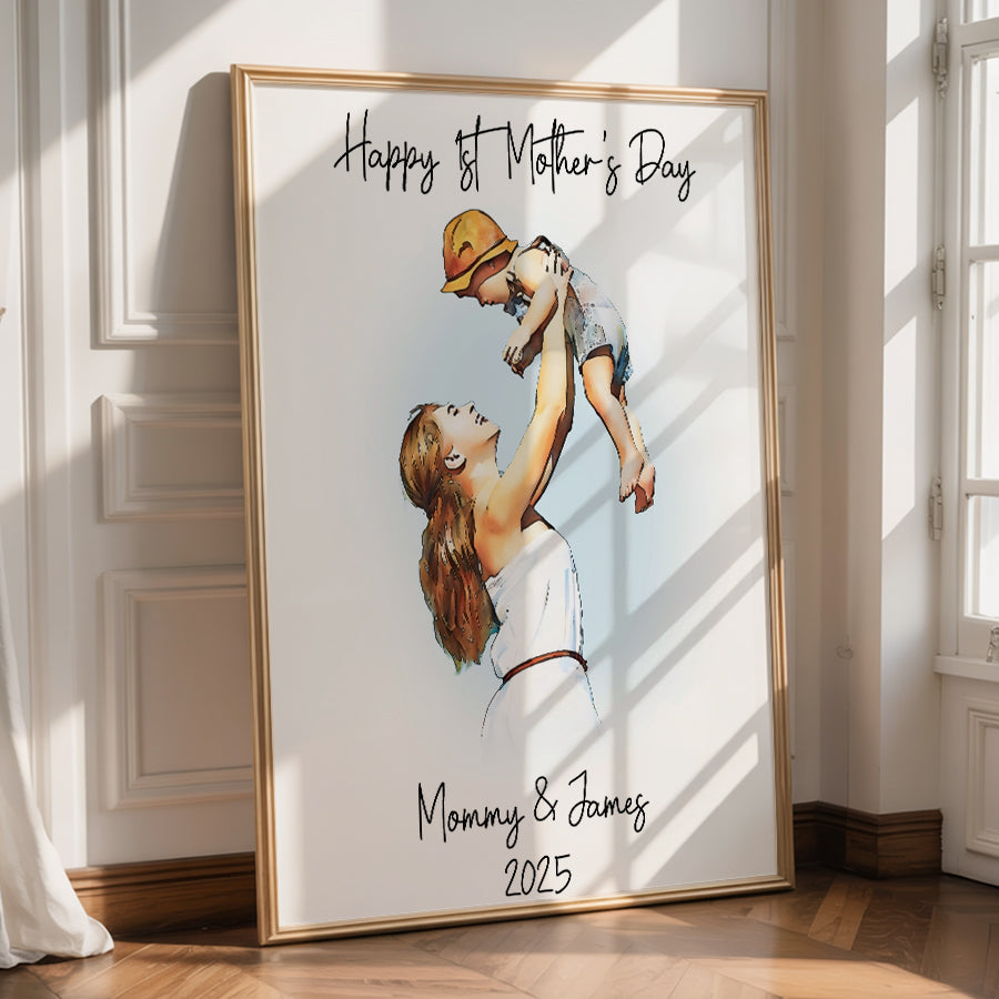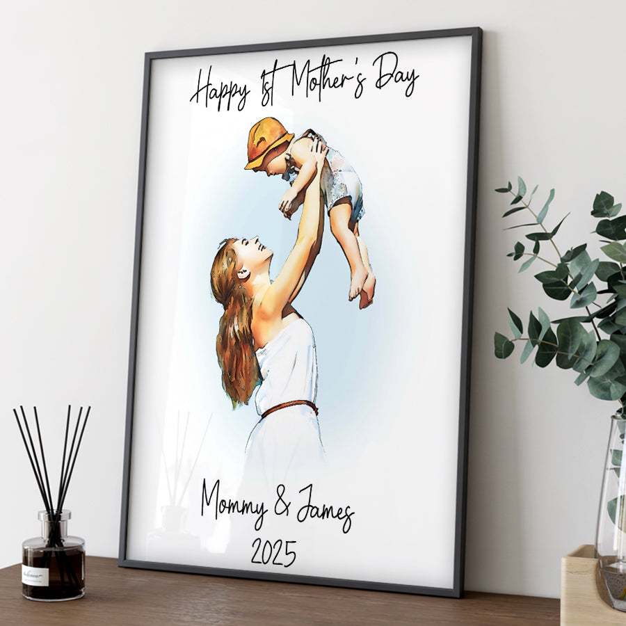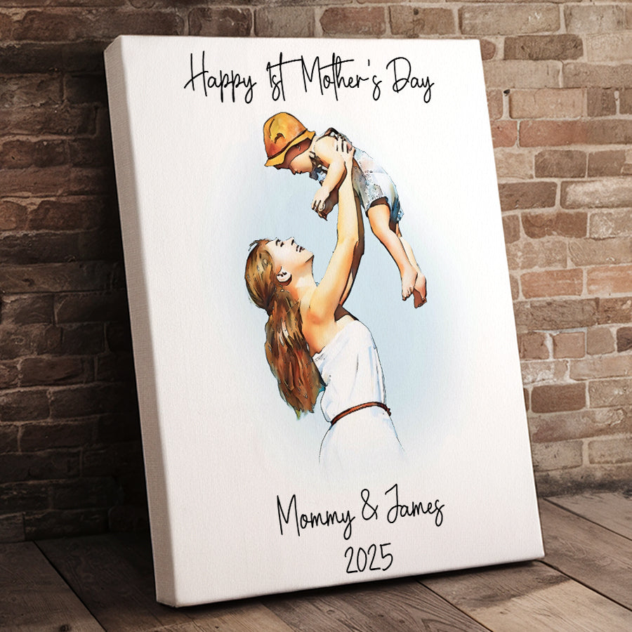 Embrace the enchantment of a new chapter! This First Mother’s Day is not just another occasion; it’s a radiant celebration of love, growth, and the profound bond that blossoms between mother and child. Imagine her delight as she unwraps a personalized first mothers day gift | first mothers day canvas | watercolor photo canvas for 1st mother's day that encapsulates the essence of her inaugural journey into motherhood—each brushstroke a tribute to her unique story.