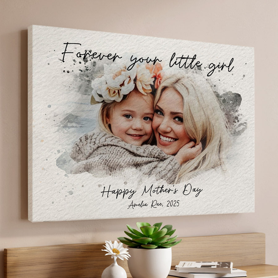 Make this First Mother's Day unforgettable with a personalized first mothers day gift | wall art canvas ready to hang | personalized watercolor portrait gift for new mom that beautifully captures the essence of her journey into motherhood. Don’t wait—order your personalized First Mother's Day canvas today and give her a gift that speaks from the heart!