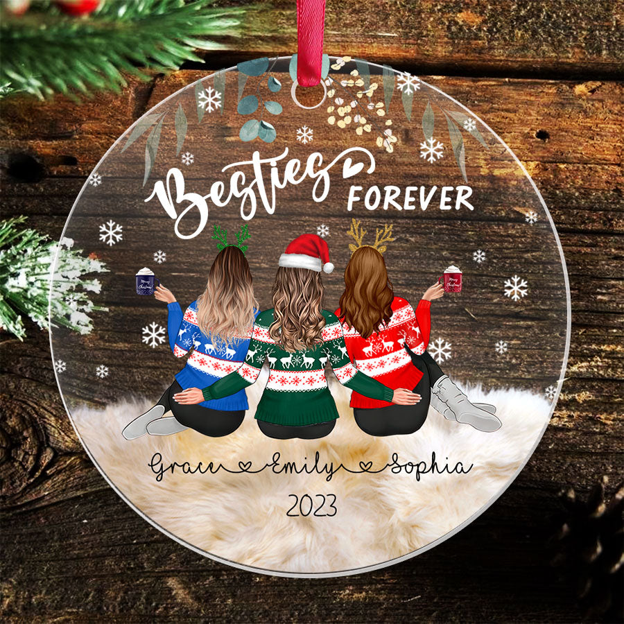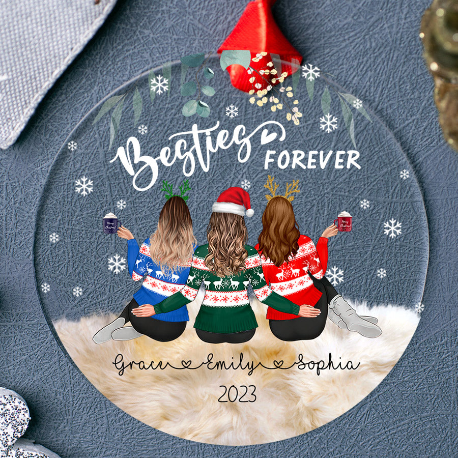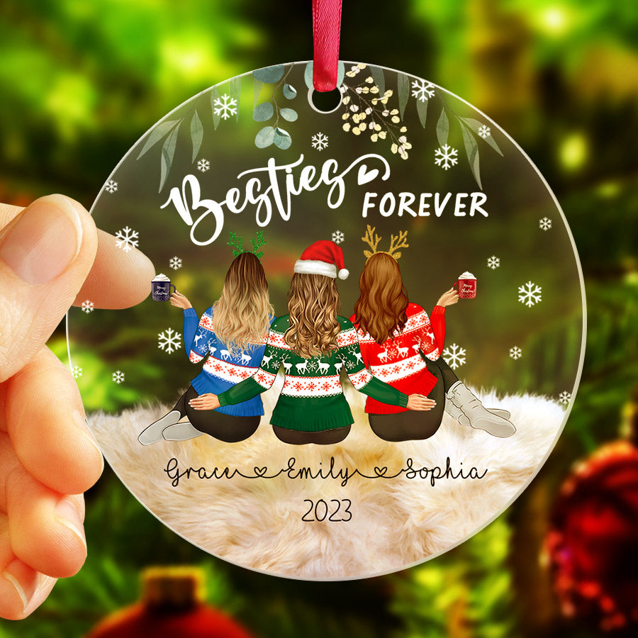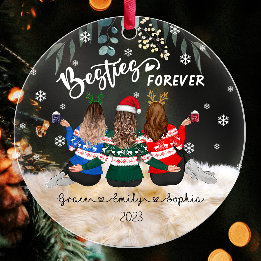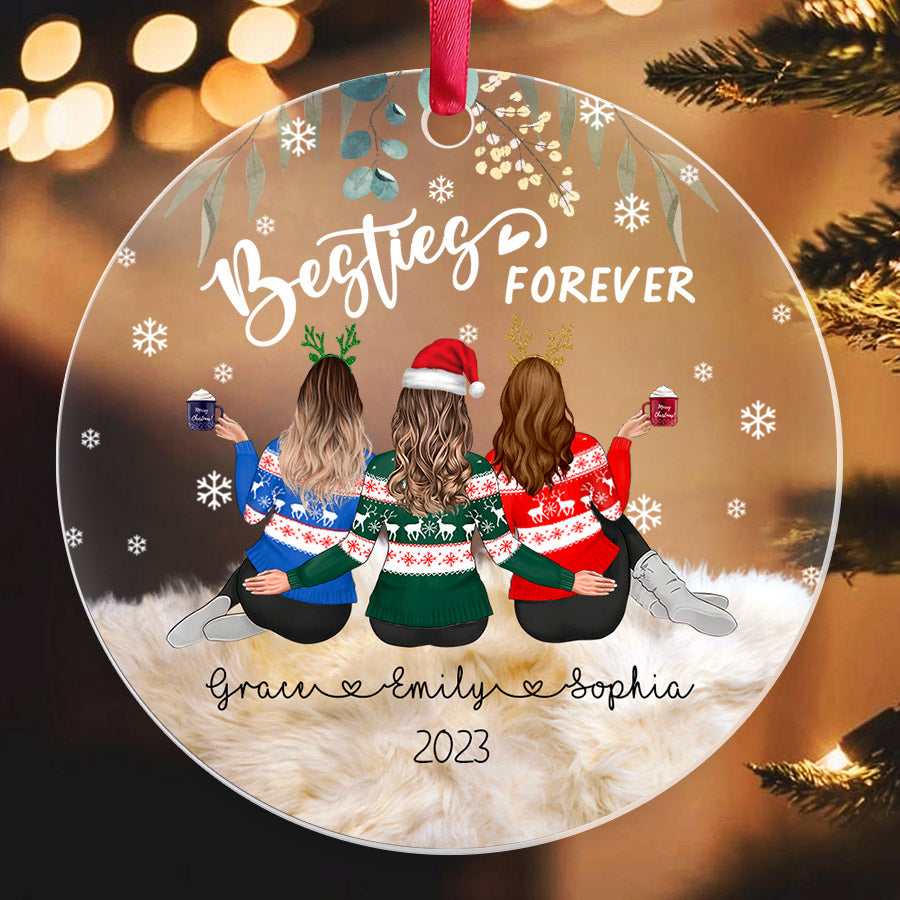 Friend Ornaments Personalized | Custom Besties Forever Ornament | Name Ornaments | Acrylic Circle Ornaments