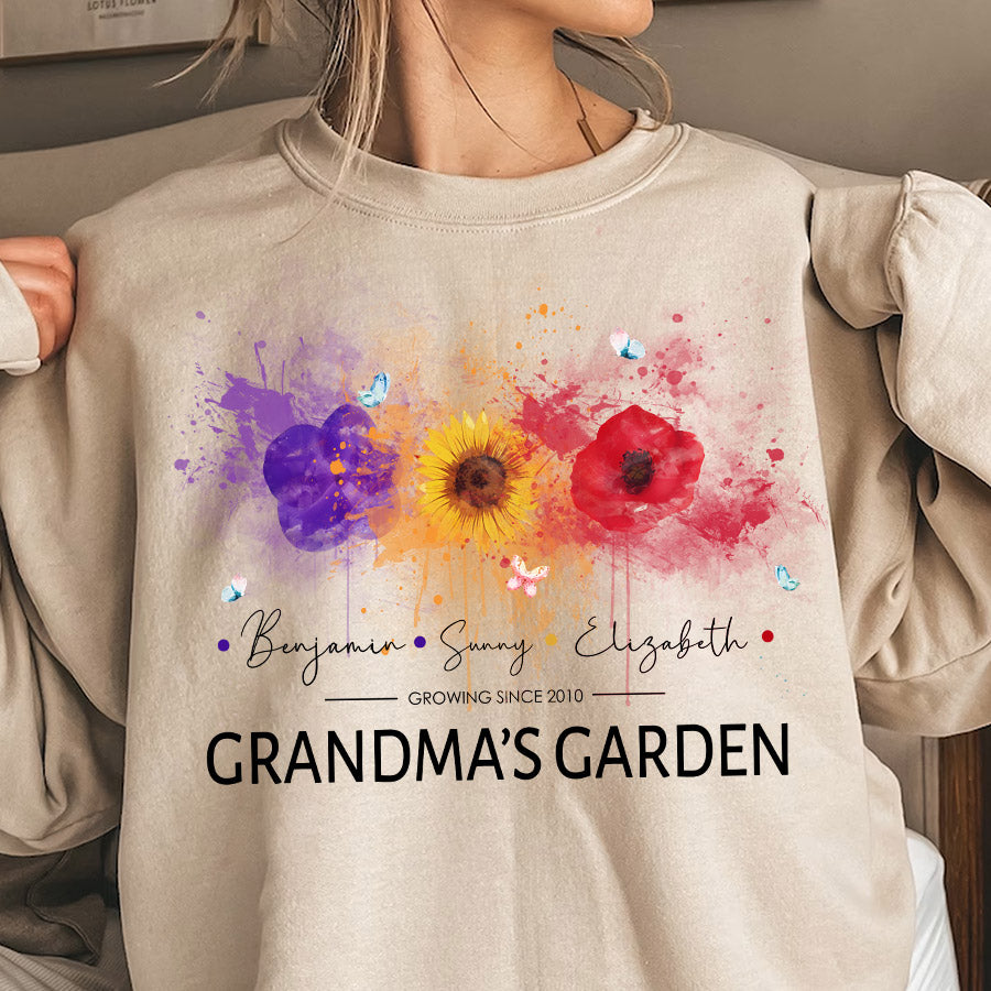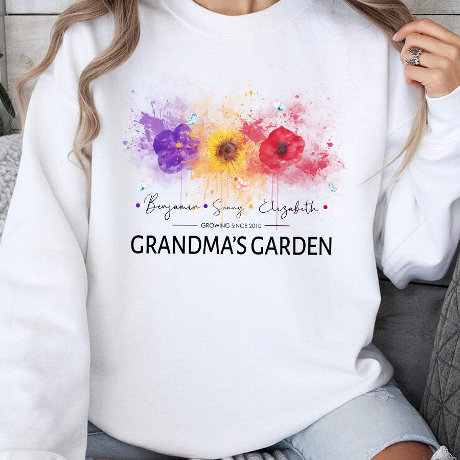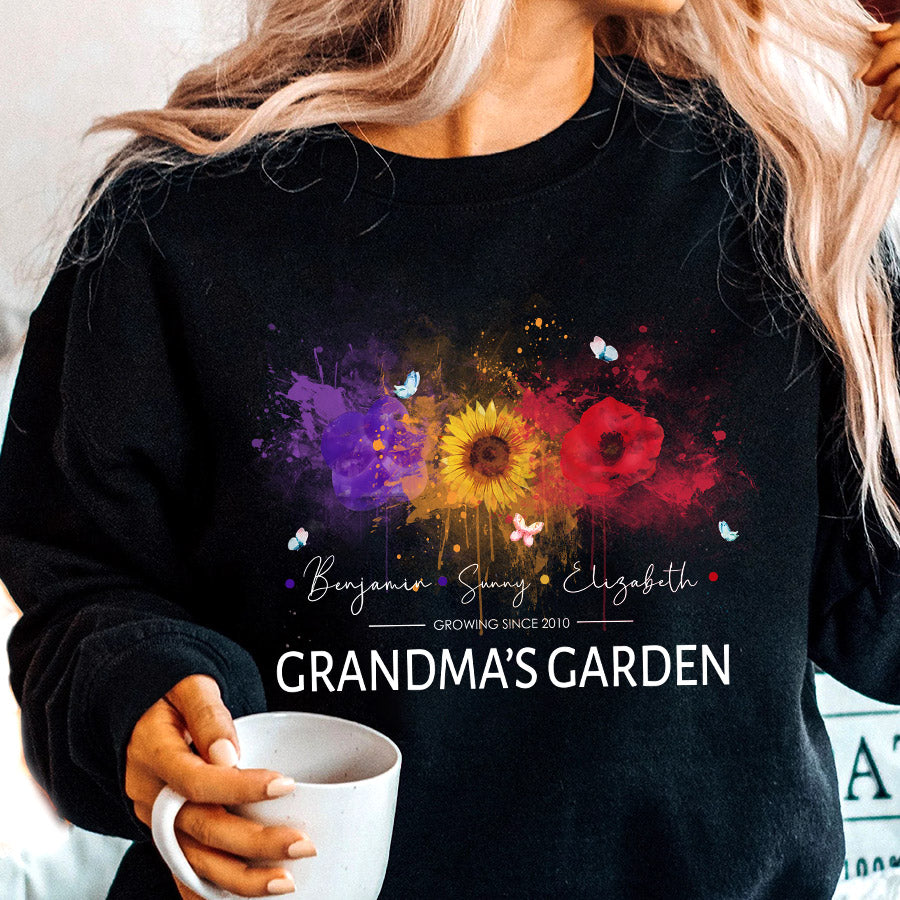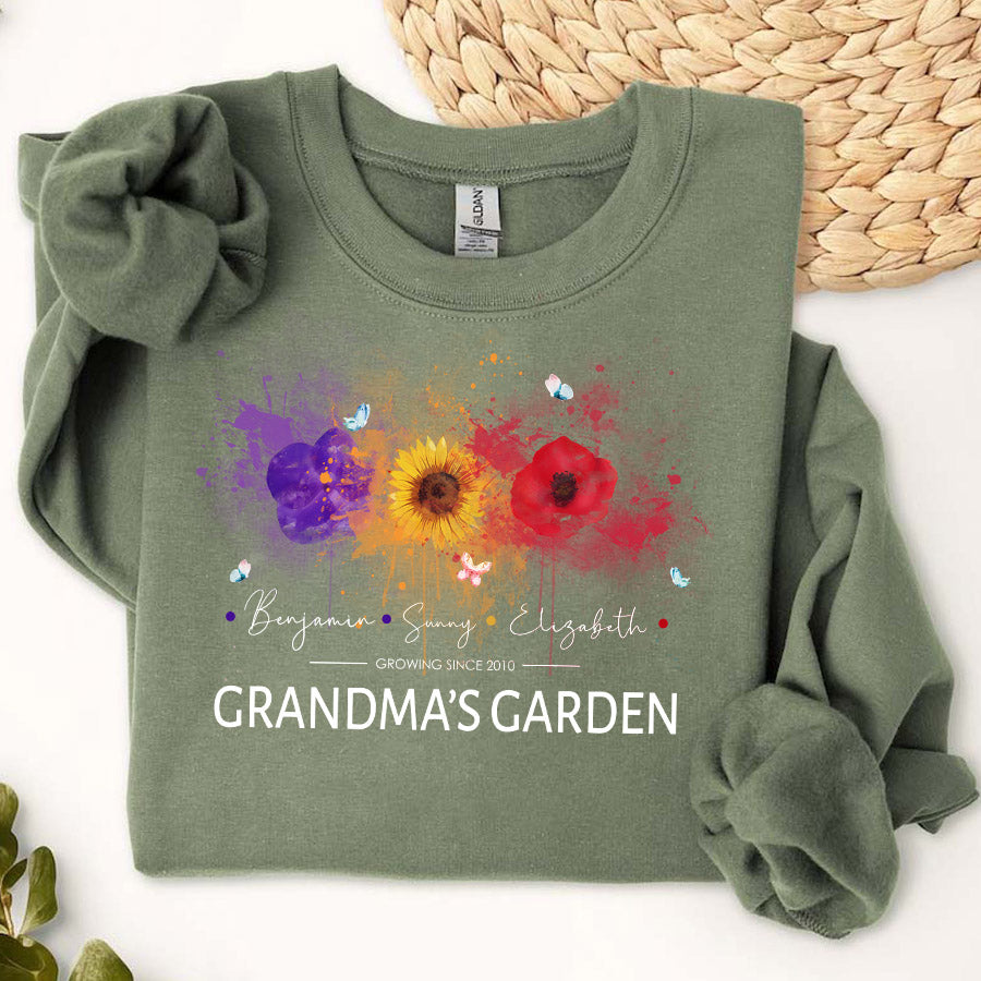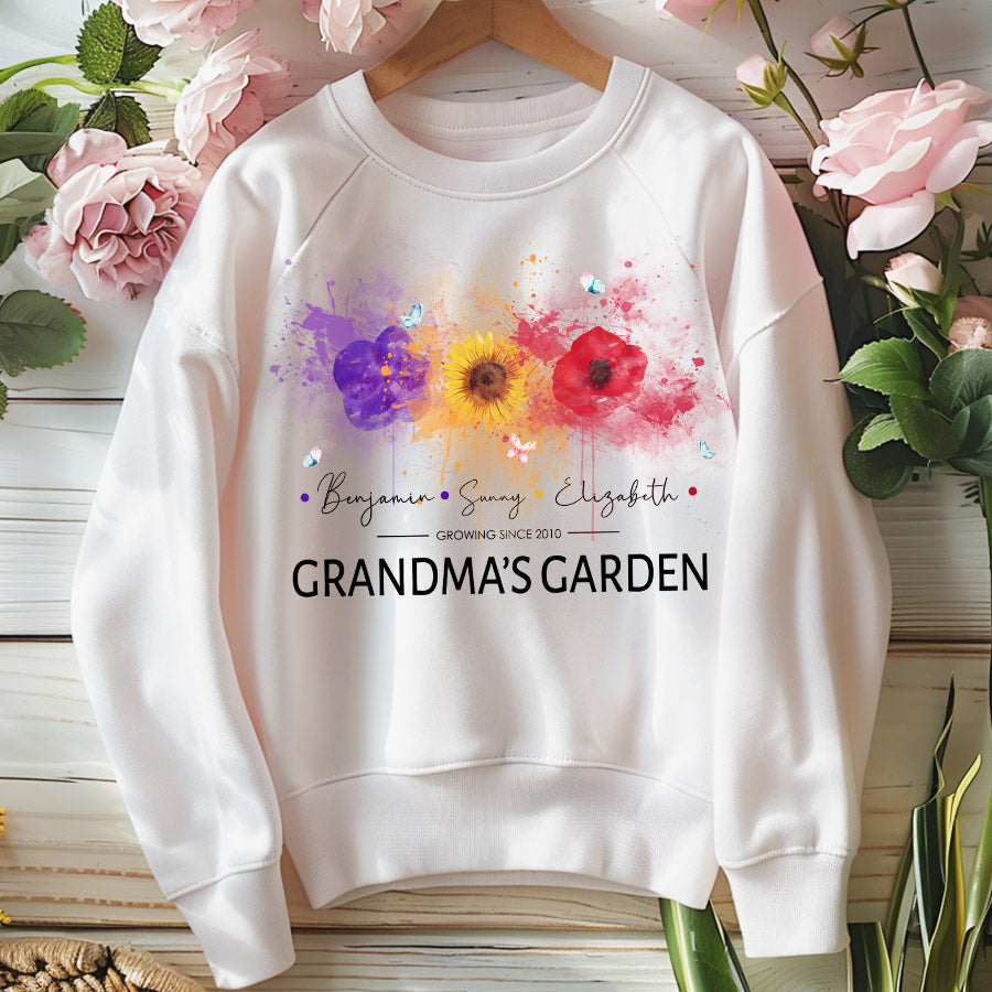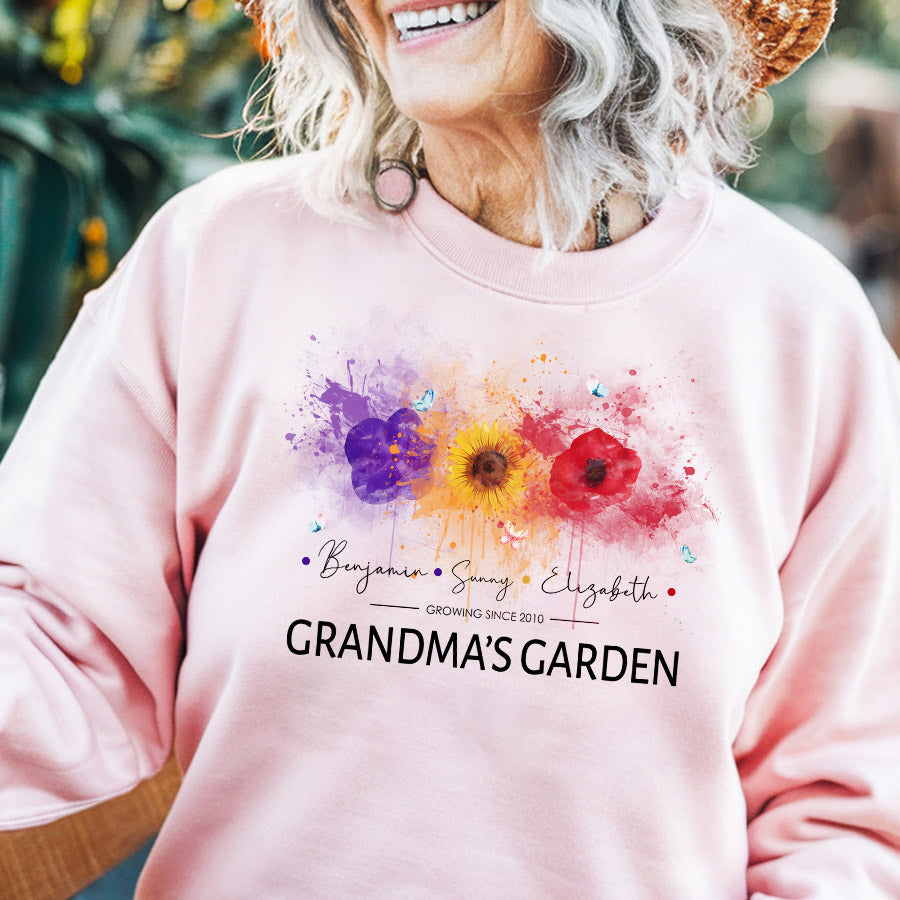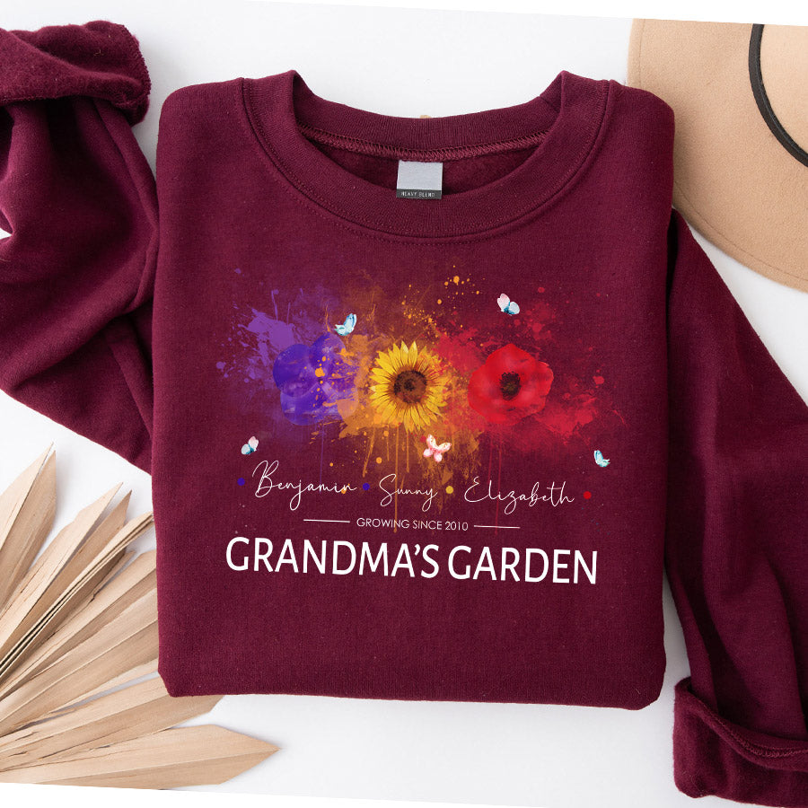 Personalized Gifts For Grandma | Best Custom Mothers Day Gifts | Personalized Grandma Sweatshirt | Custom Birth Flower Garden Sweatshirt