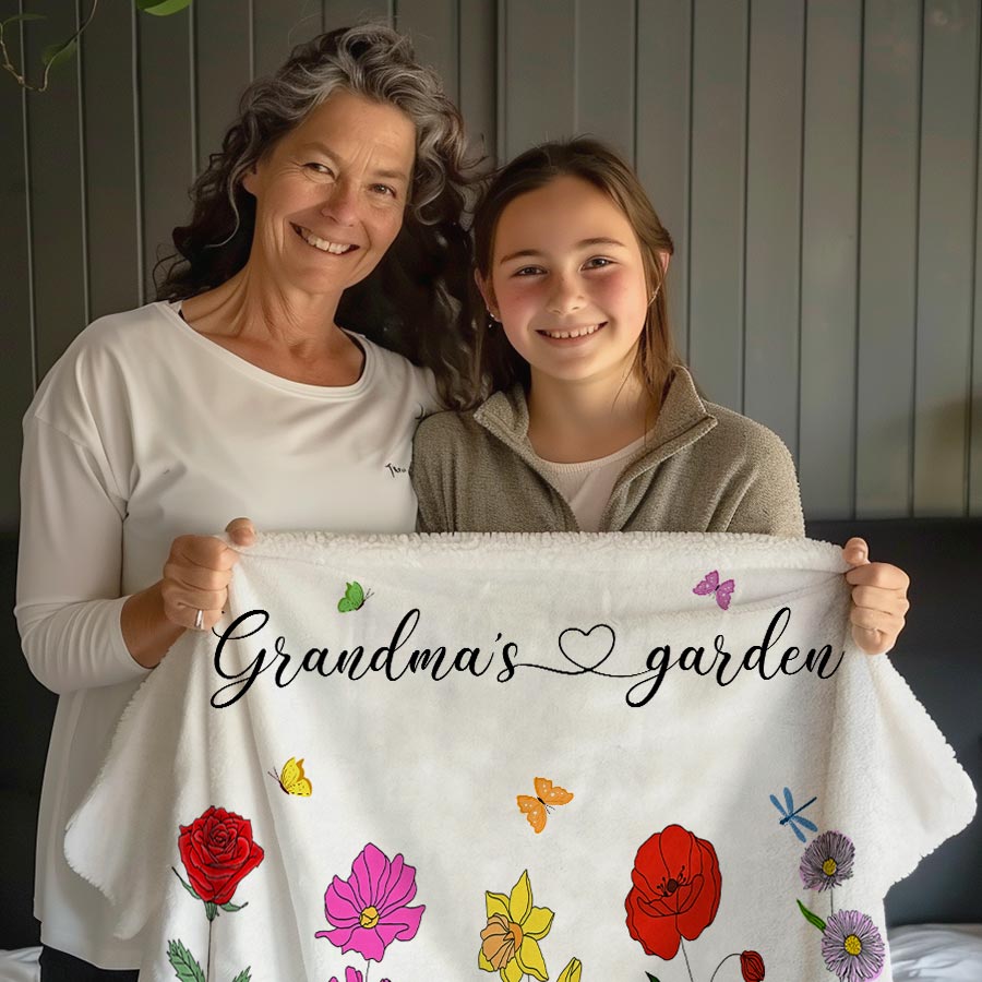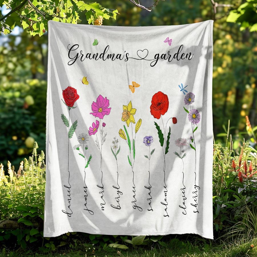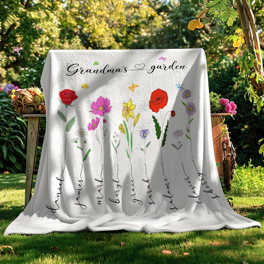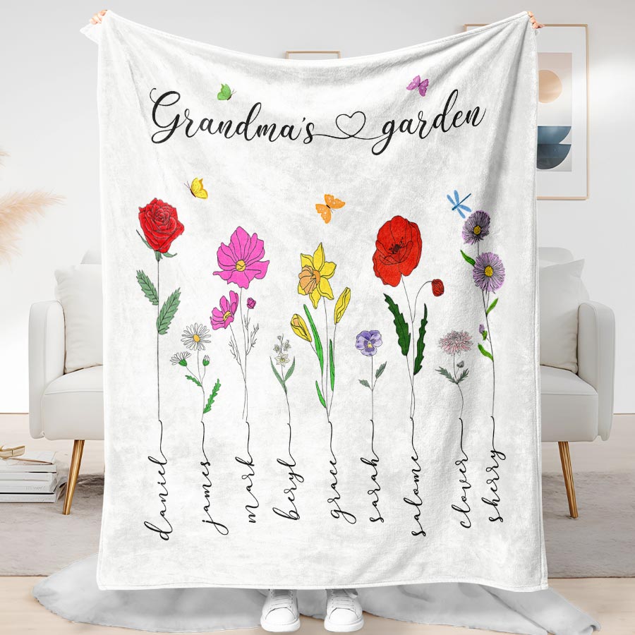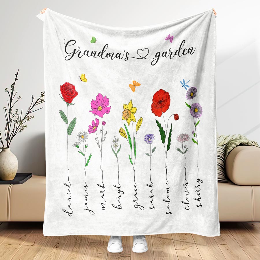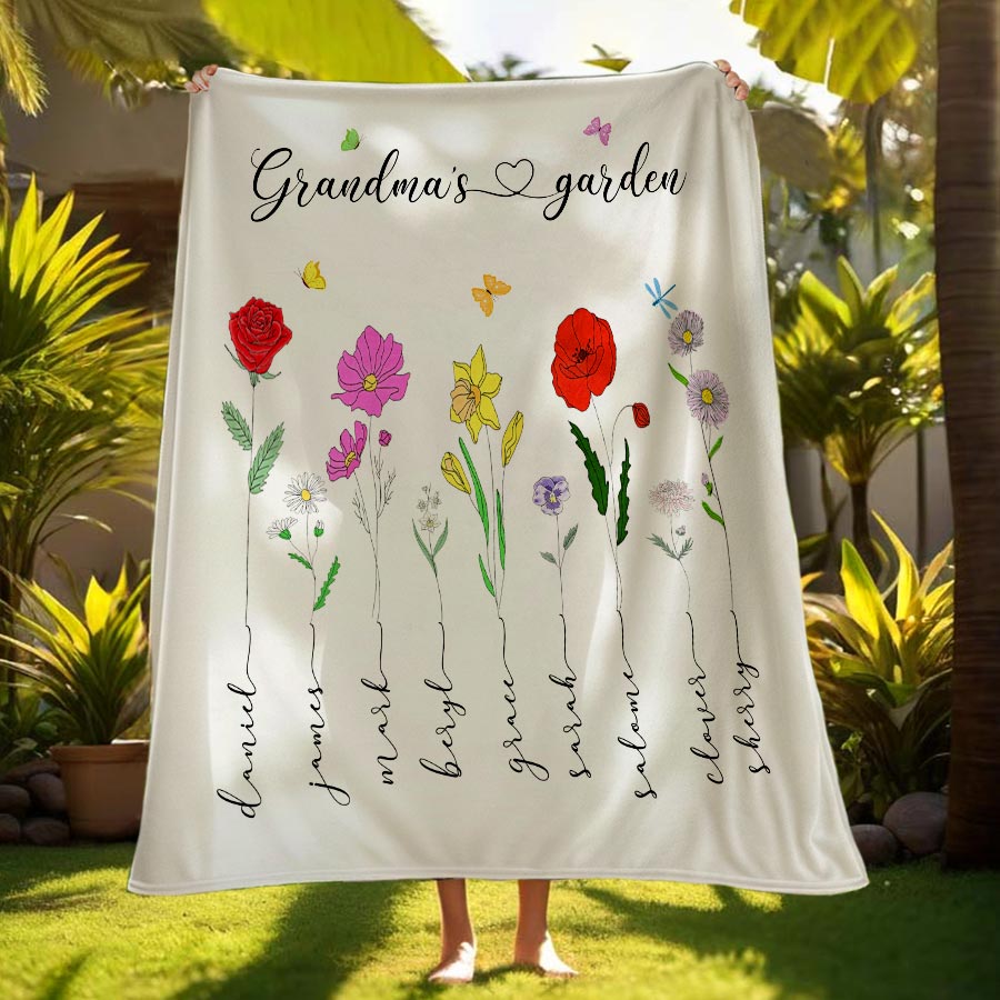 Personalized Gift Grandma | Custom Grandma’S Garden Blanket For Mother’S Day | First Mom Now Grandma Blanket