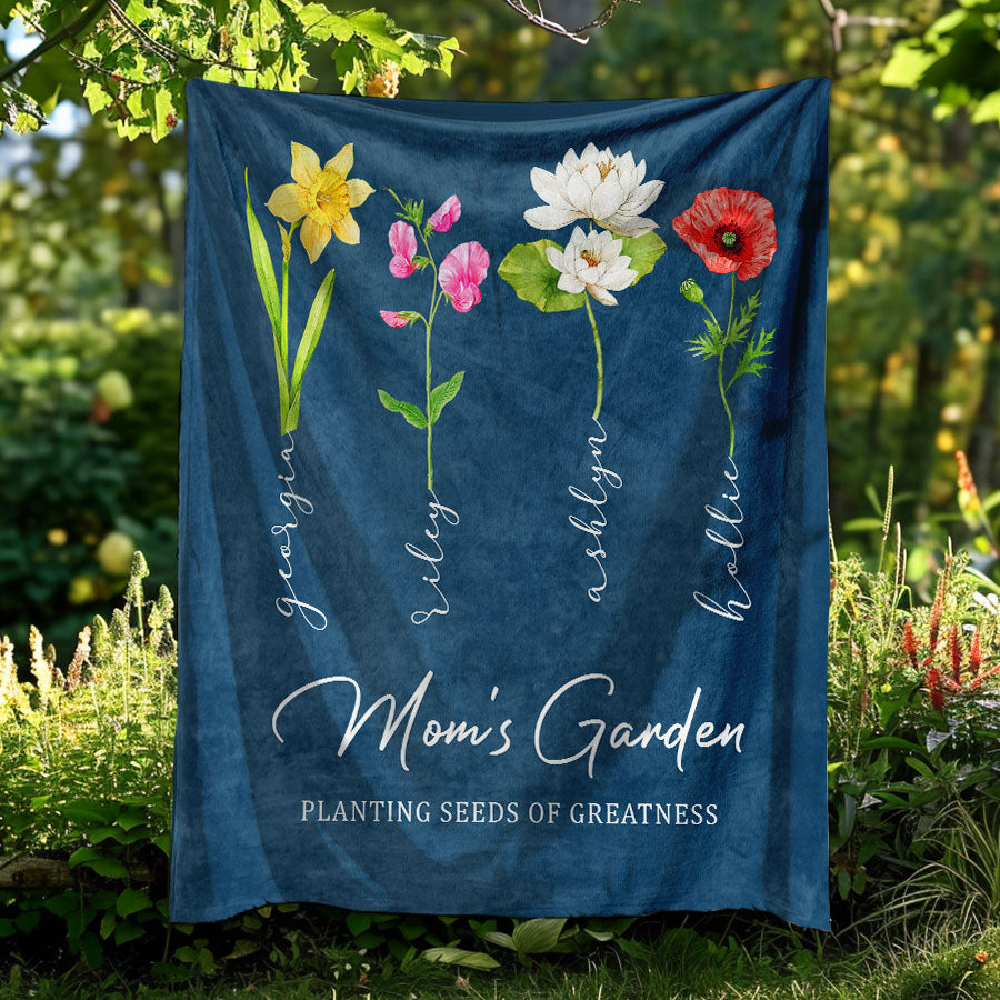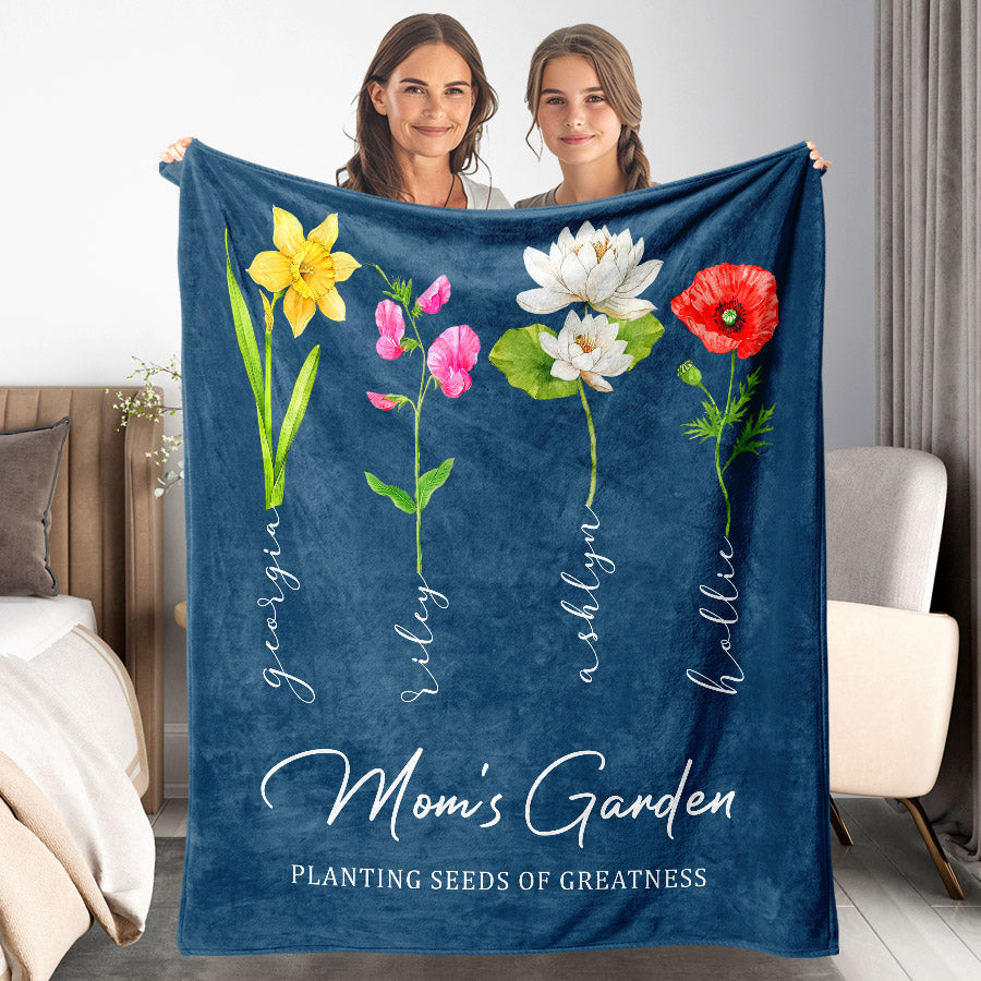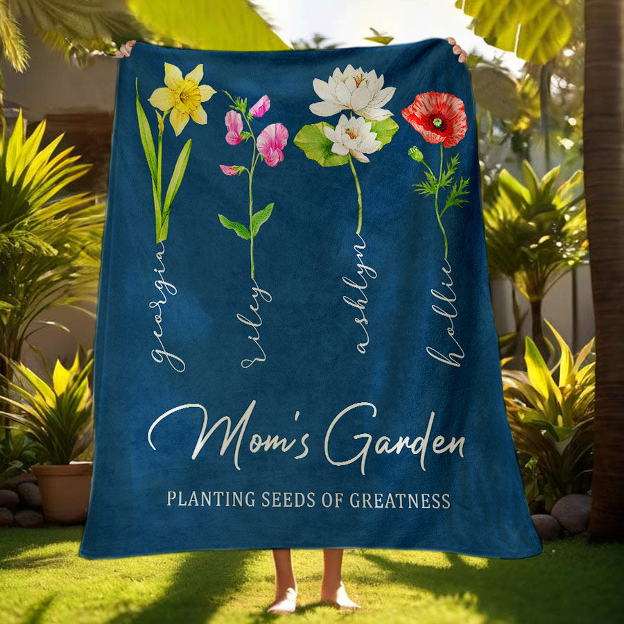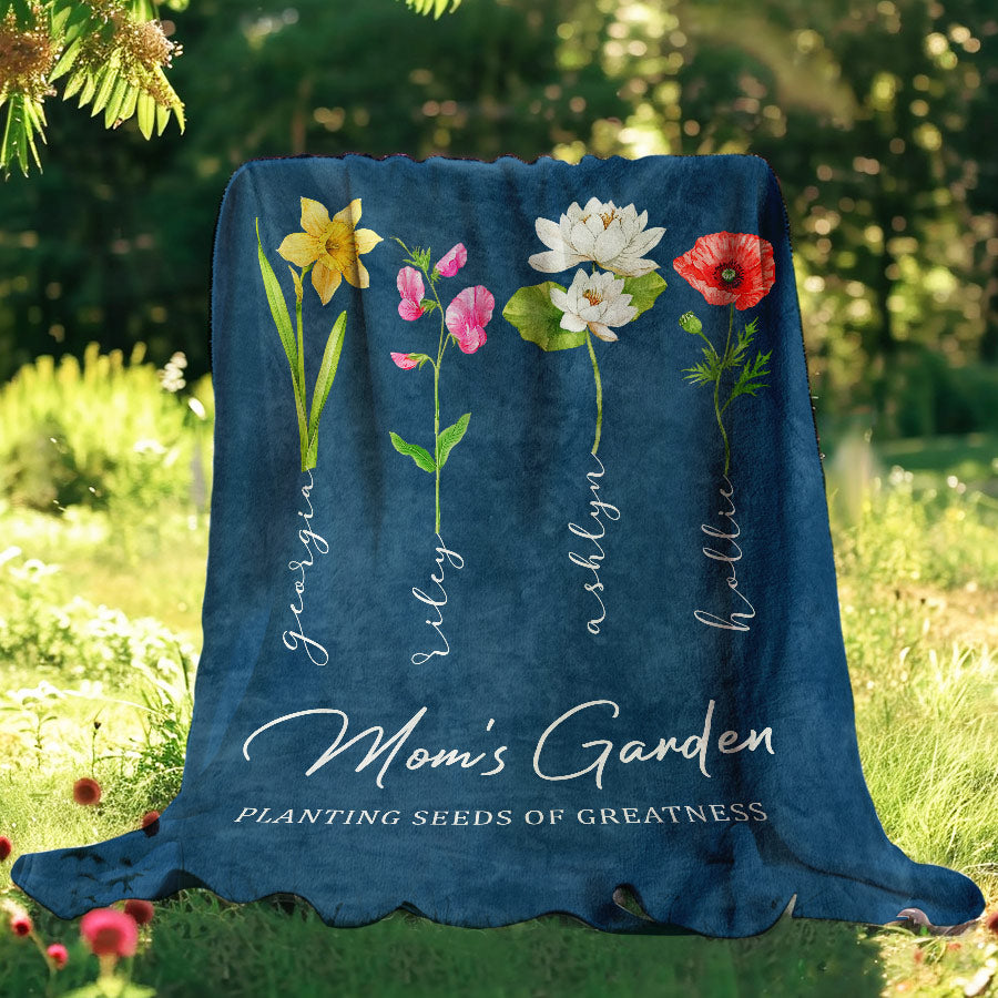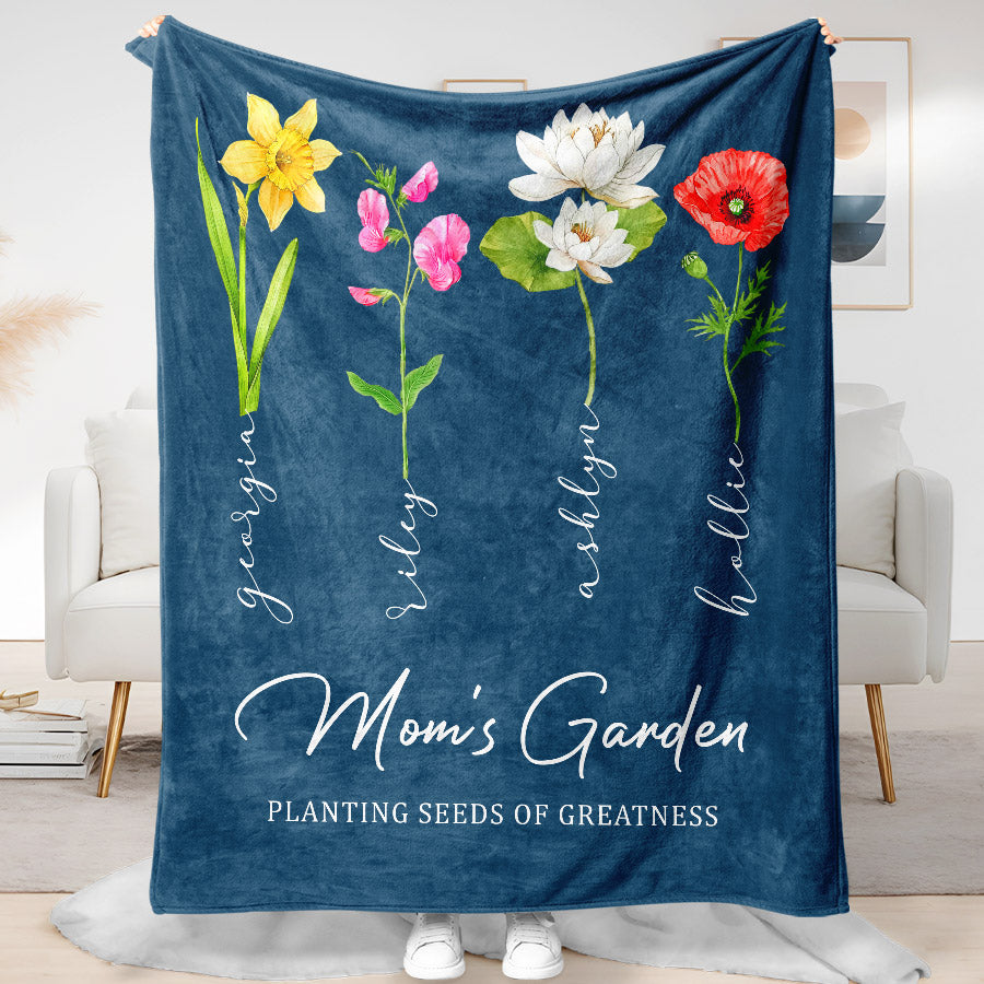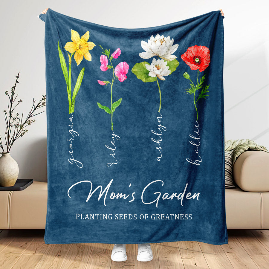 Personalized Mother’S Day Gift | Mothers Day Blanket Gift | Mother'S Day Custom Blanket | Personalized Moms Garden Blanket With Kids Names