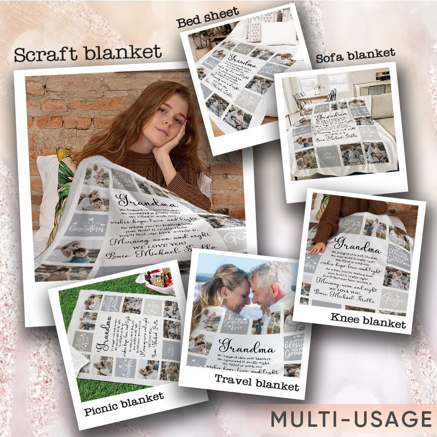 Custom Grandma Blanket | Personalised Mothers Day Gifts For Grandma | Custom Grandma Gifts | Personalized Photo Blankets For Grandma