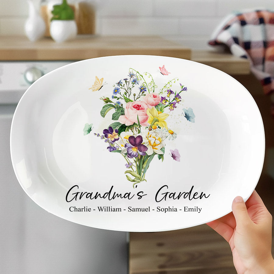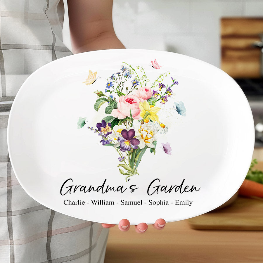 Customized Gifts For Grandma | Personalized Mother Gifts | Grandma Garden Flower Platter | Grandma Gifts With Grandkids Names