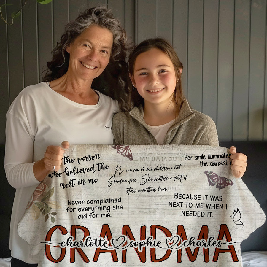 When you present your grandma with this custom-made blanket, you're giving her more than just a cozy accessory. You're giving her a tangible representation of the love and gratitude you hold in your heart. Choose her favorite colors, patterns, or even add a personalized message to make it truly one-of-a-kind. Every time she snuggles up in this blanket, she'll feel your love surrounding her.