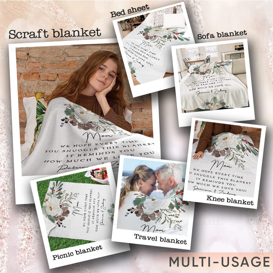 Show mom just how much you care this Mother's Day. Wrap her in the comfort and memories of family with this personalized blanket personalized gifts for mum. Purchase one for the special mother in your life today - her new favorite way to feel your love is just a click away.