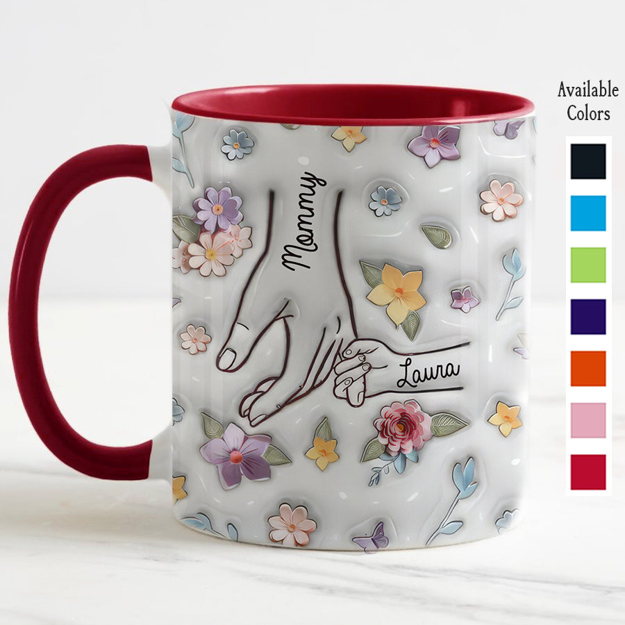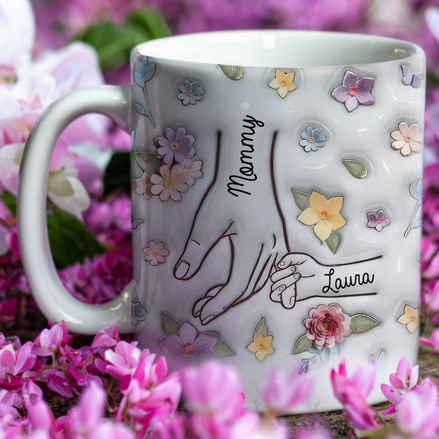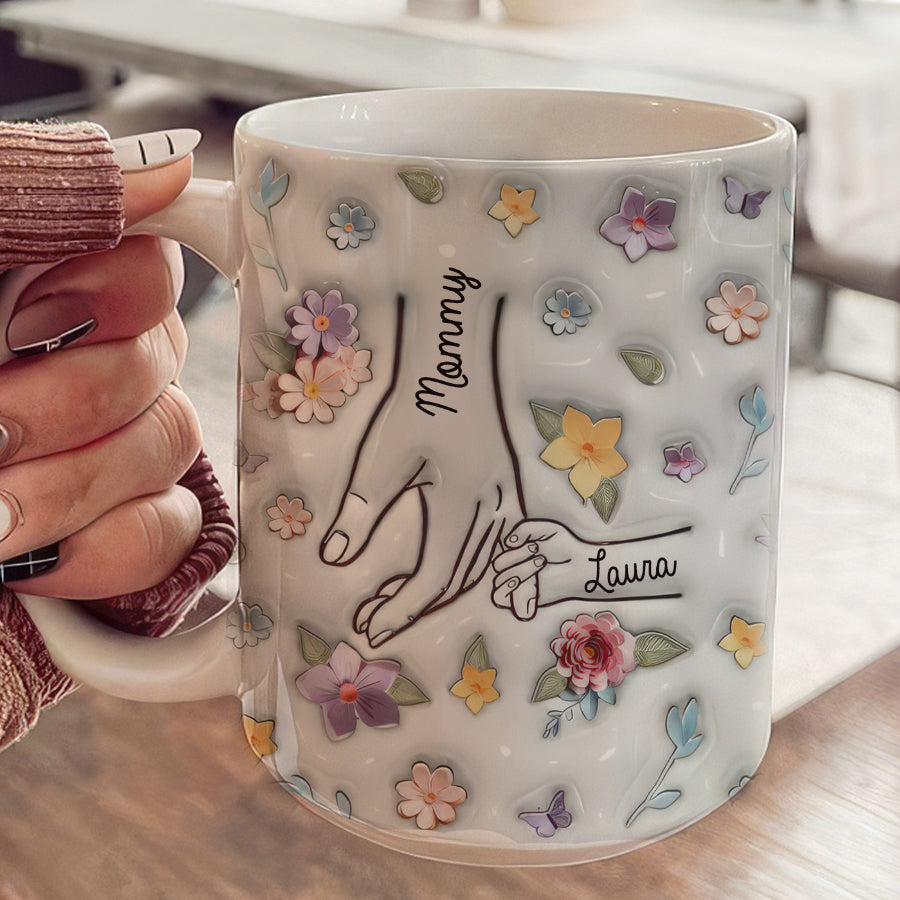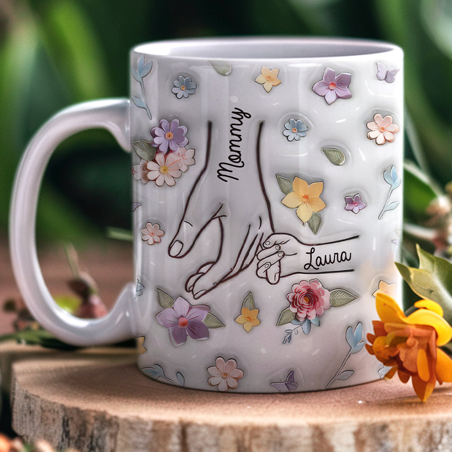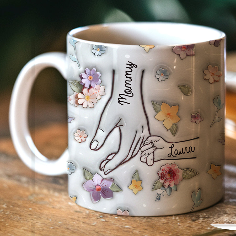 Give personalized gifts for new mom | holding mama’s hand 3d inflated effect mug that celebrates the impact motherhood has made on her life. Every time she reaches for her personalized mug, the handprint engraved within will bring a smile to her face and remind her of the enduring love and guidance she provides to her family. A simple gesture, but one that comes straight from the heart.