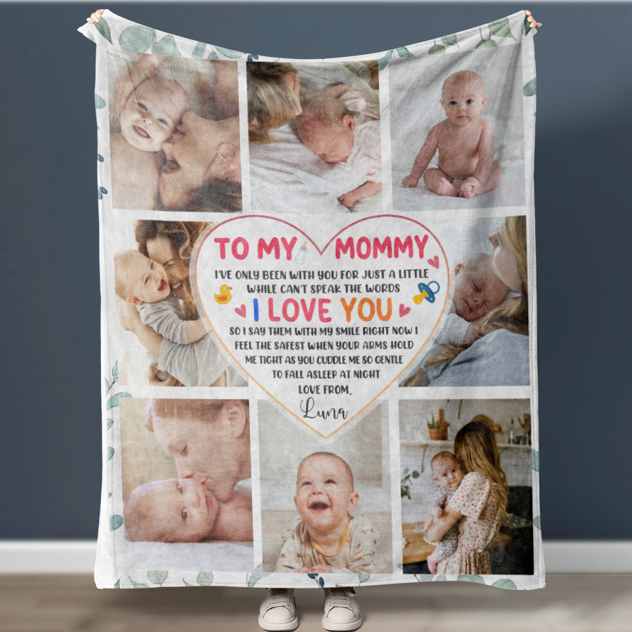 More than personalized gifts for new mom | collage picture blankets for chilly evenings, this customized blanket offers mom moments of joy throughout her day. Whether resting between errands or soothing her with after-dinner relaxation, your special blanket acts as a hug whenever she needs it most. Its timeless fleece design also makes it a cozy companion for many Mother's Days to come.