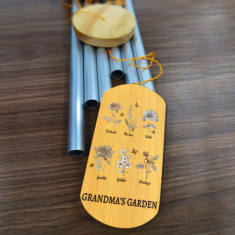 Grandma Personalized Gifts | Custom Mothers Day Gifts | Personalized Wind Chimes Grandma | Custom Grannys Garden With Names