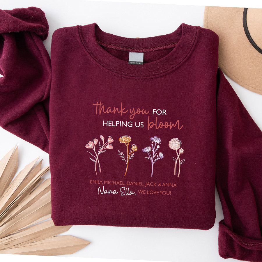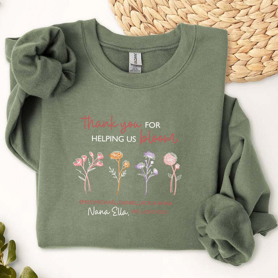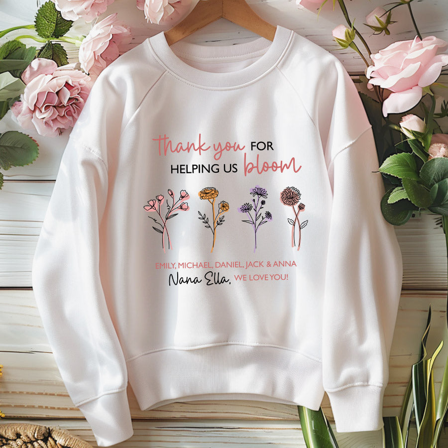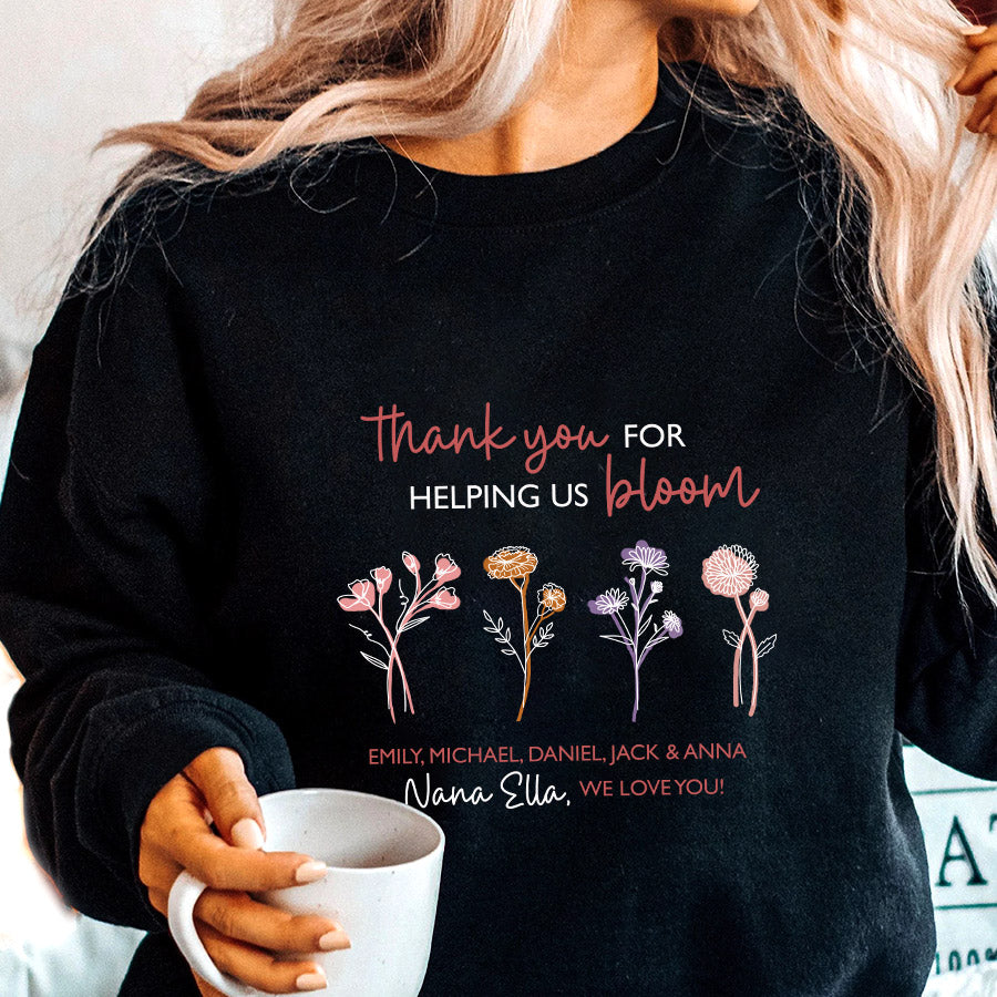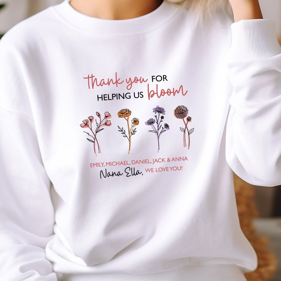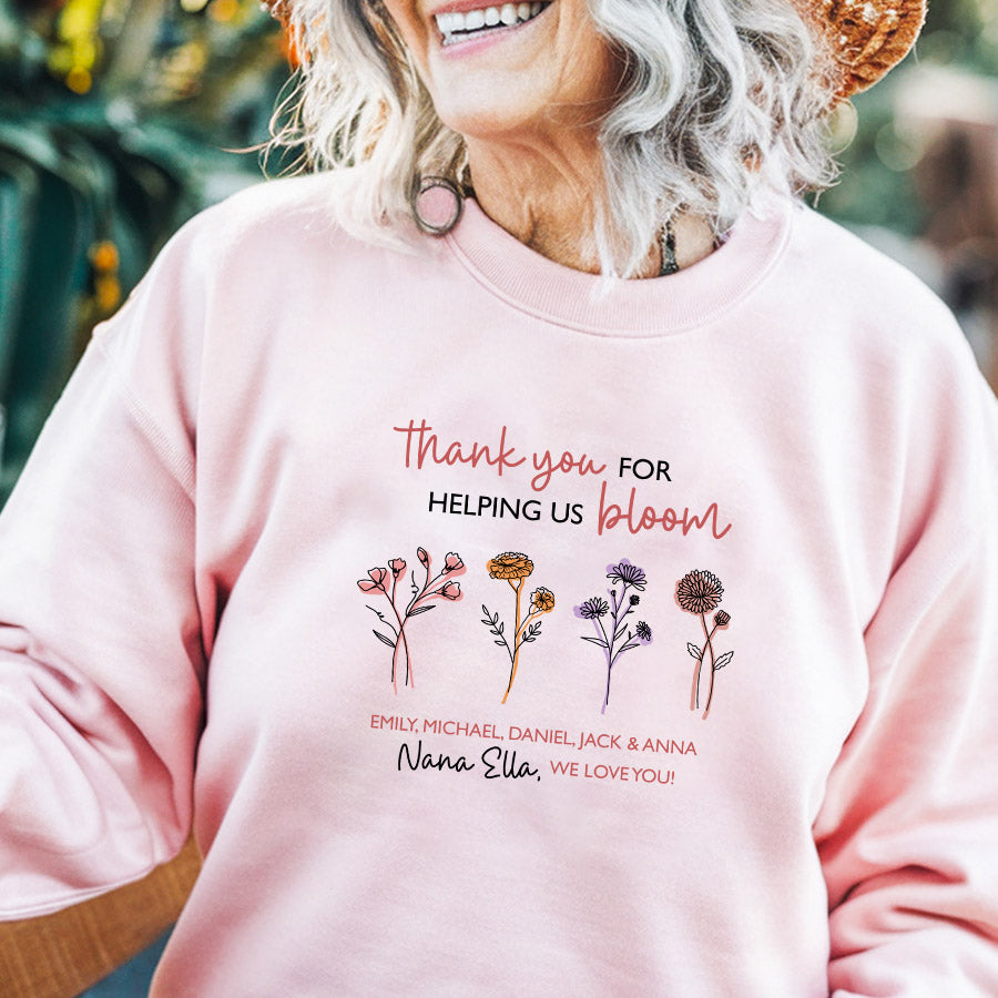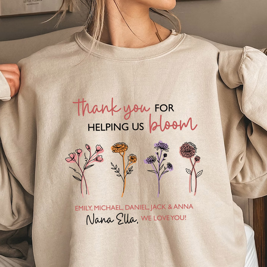 Keep grandma cozy in her garden oasis with the sweatshirt personalized gifts grandma | best personalized mother’s day gifts featuring her grandchildren's birth month flowers. This extraordinary grandma garden gift is more than just a piece of art; it's a heartfelt tribute to the incredible woman who has made a lasting impact on your life. Whether she's potting petite pansies or pruning her prize-winning petunias, Grandma's garden is where family bonds take root. It's her peaceful place to nurture nature's beauty and cherish moments with those who fill her world with joy.