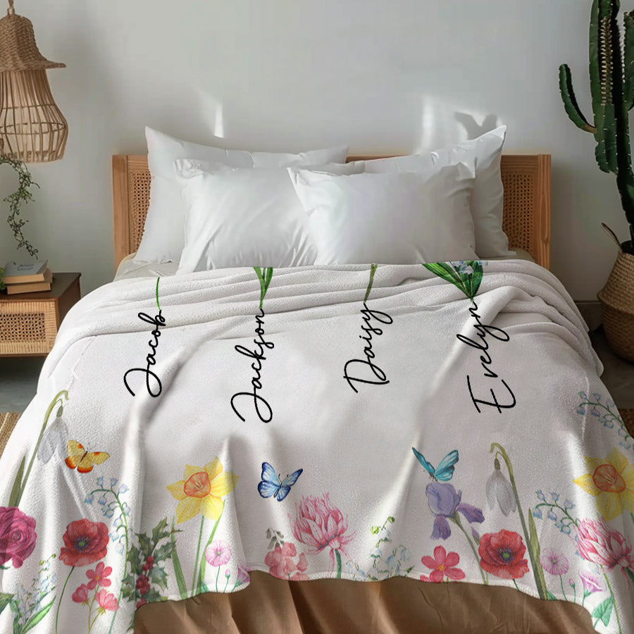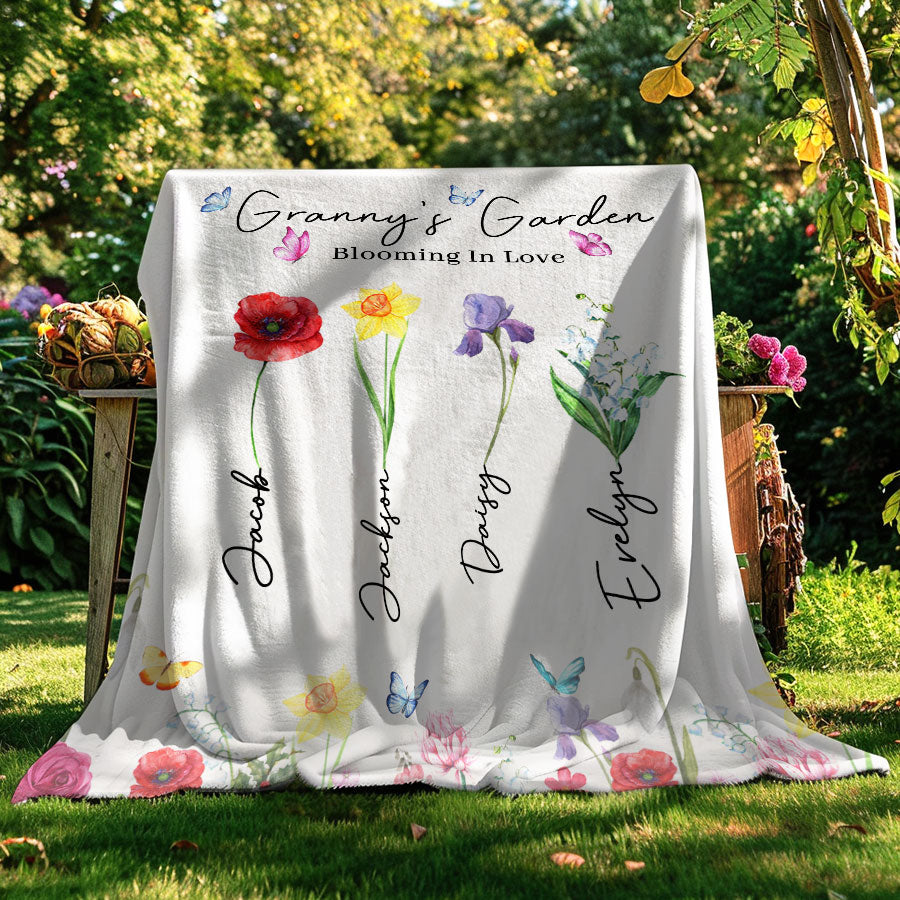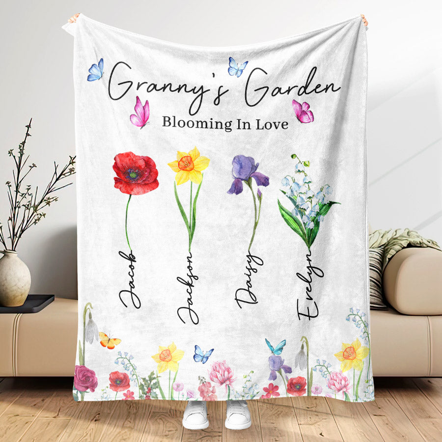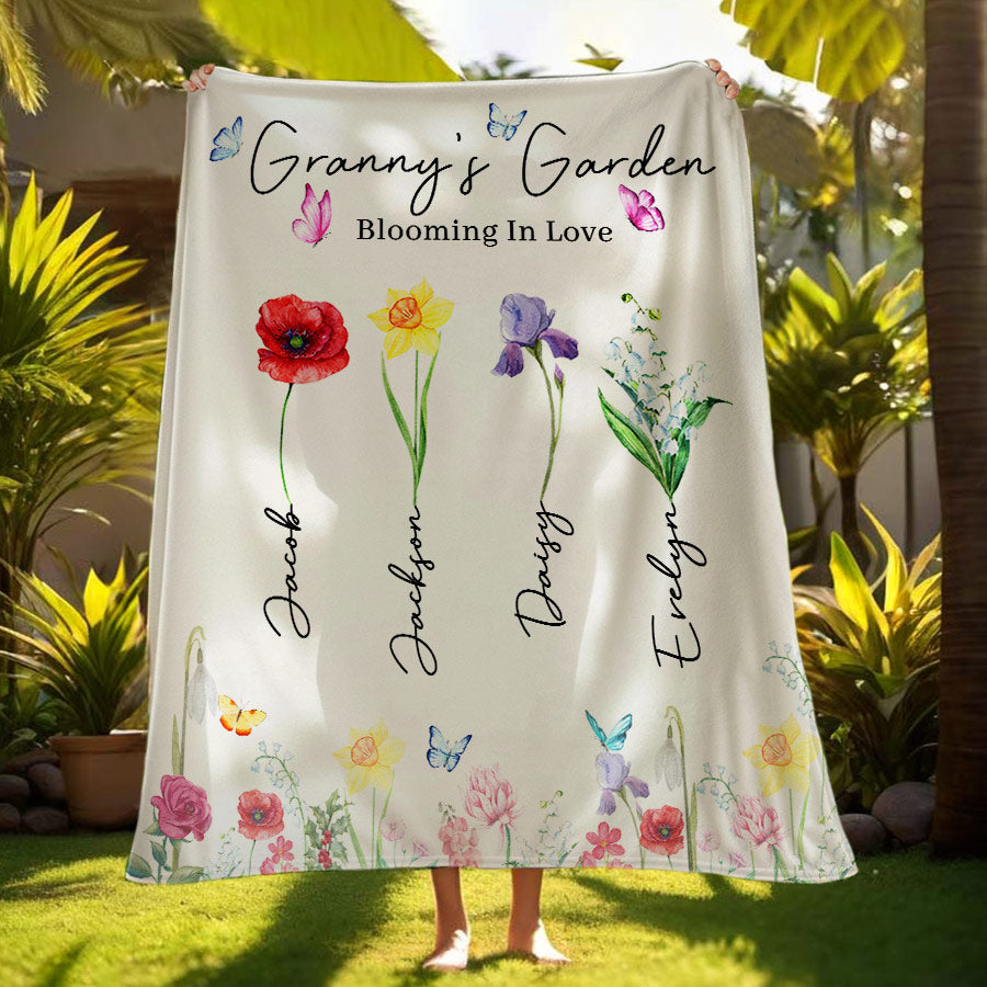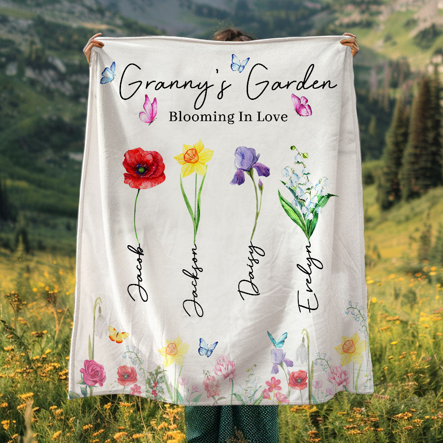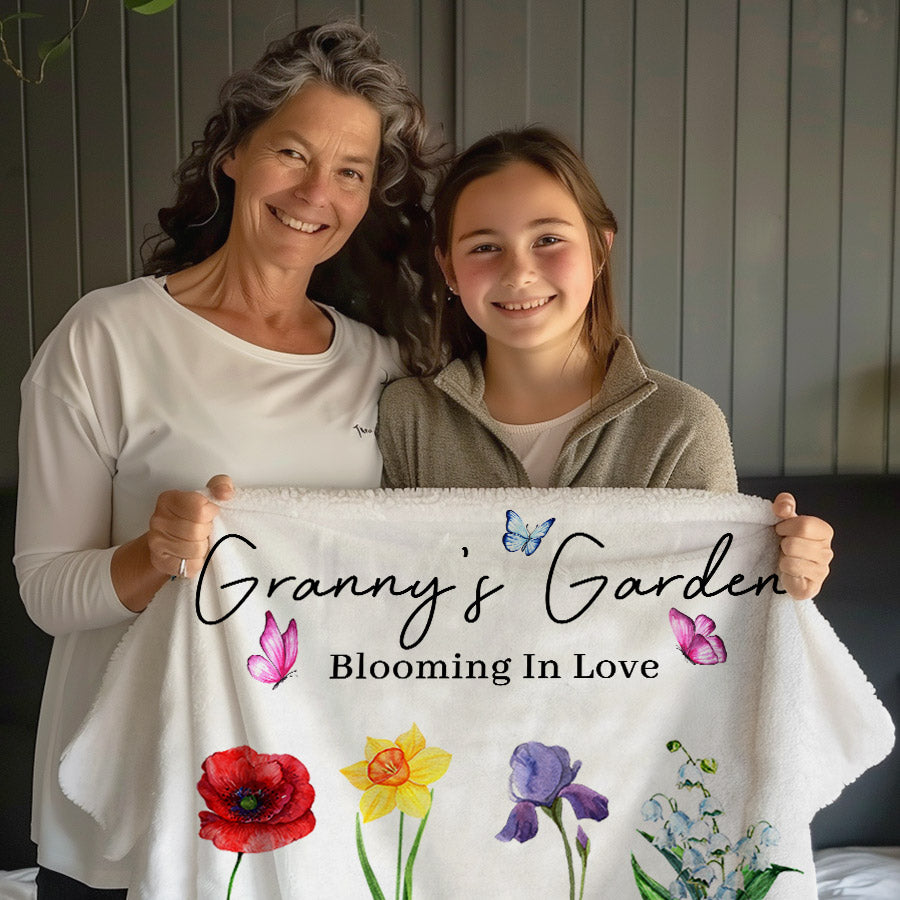 Custom Mother’S Day Gifts For Grandma | Personalised Gifts For Grandma | Grandma'S Garden Blanket | Mimi Garden With Birth Flower Quilt