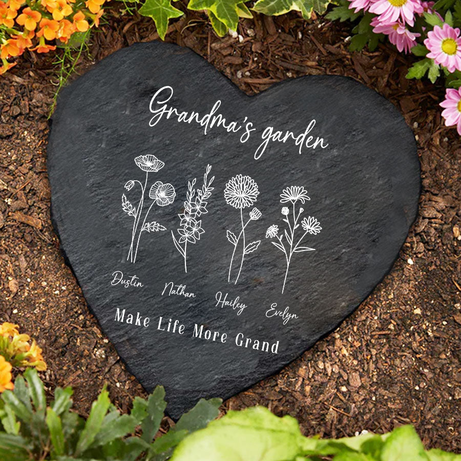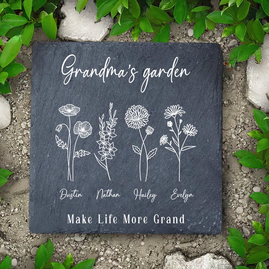 Give grandma unique personalized gifts grandma | personalized mother’s day garden gifts to remember her grandchildren every time she visits her beloved garden. Our personalized garden stones can be customized for free with each child's birth month flowers. This extraordinary grandma garden gift is more than just a piece of art; it's a heartfelt tribute to the incredible woman who has made a lasting impact on your life.