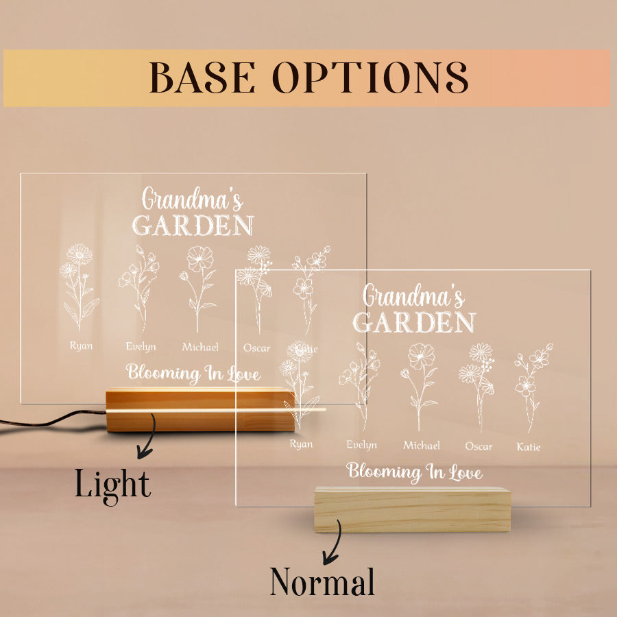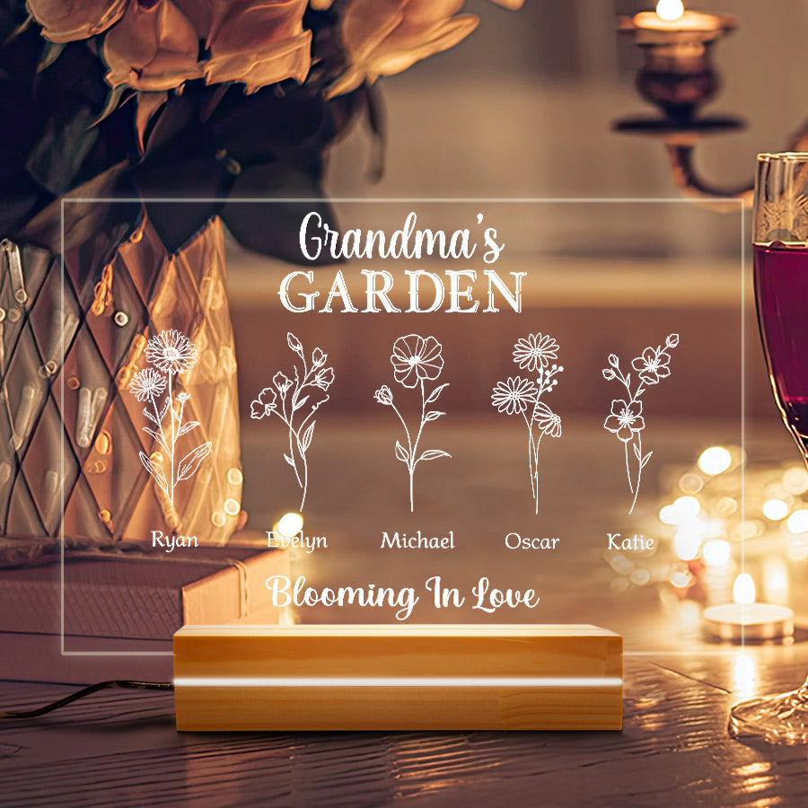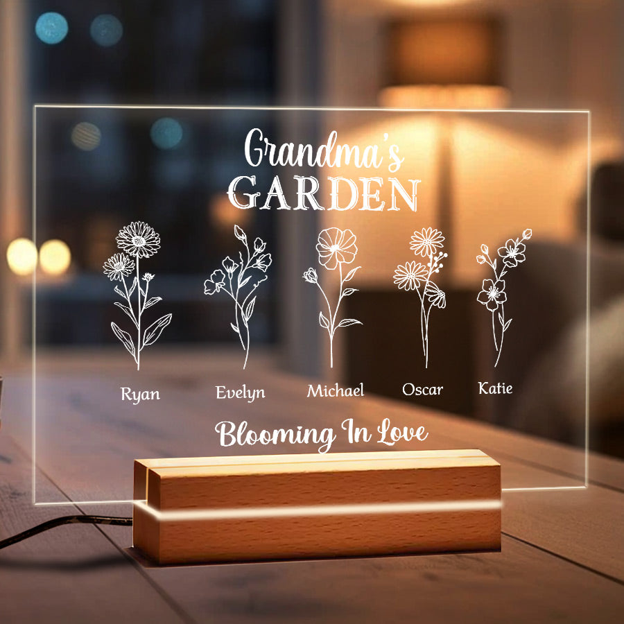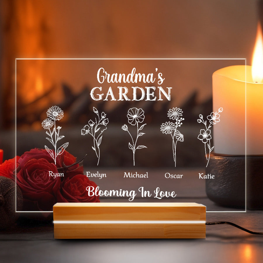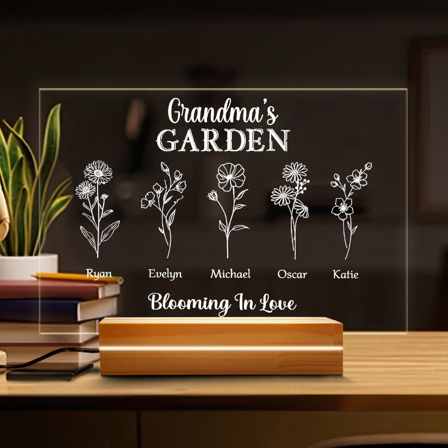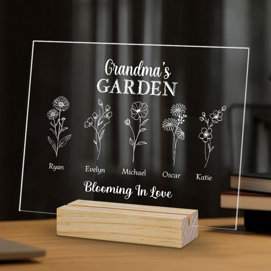 Welcome thoughtful garden art into Grandma's garden with our acrylic plaque. The beautiful personalized gifts grandmas | custom mothers day gifts are laser engraved with your child's name and birth month, alongside a detailed illustration of their representative birth month flower. This extraordinary grandma garden gift is more than just a piece of art; it's a heartfelt tribute to the incredible woman who has made a lasting impact on your life.