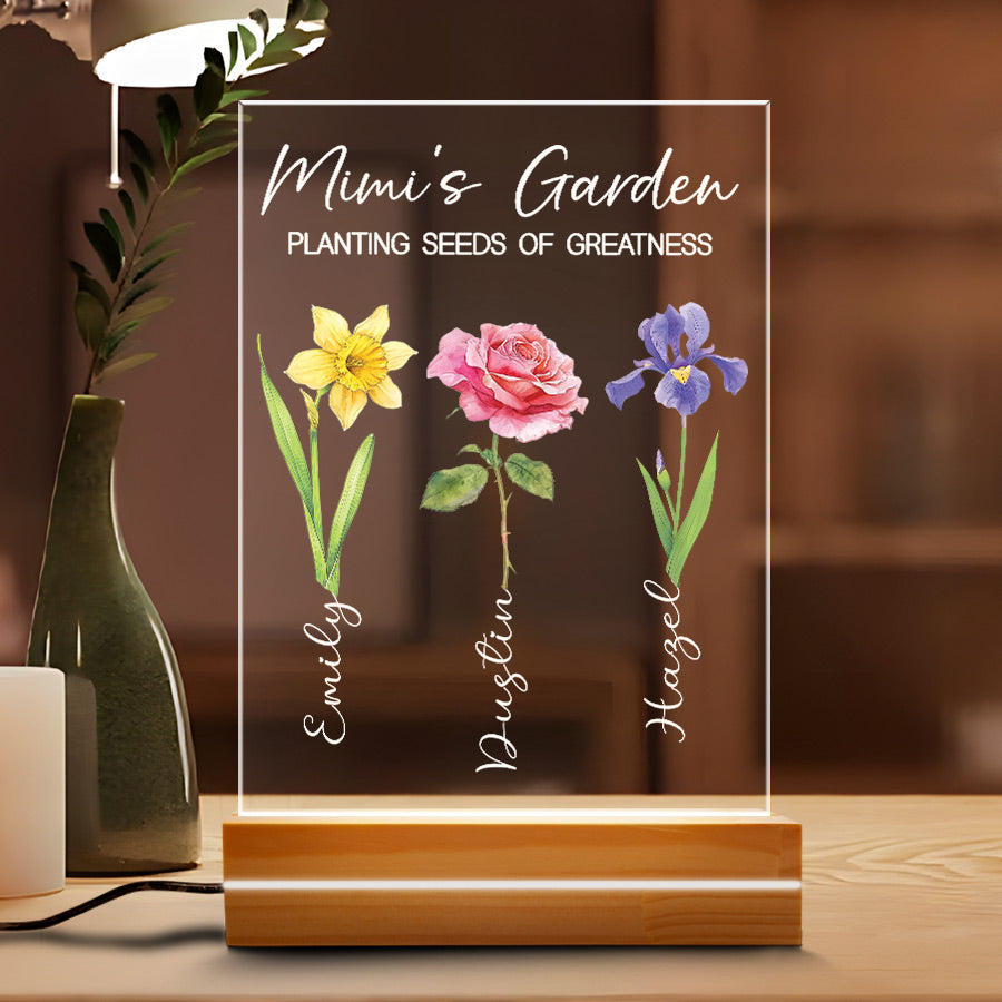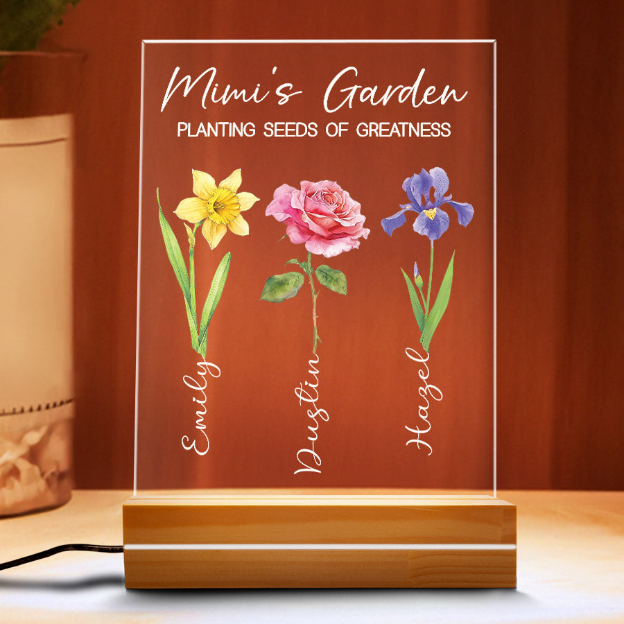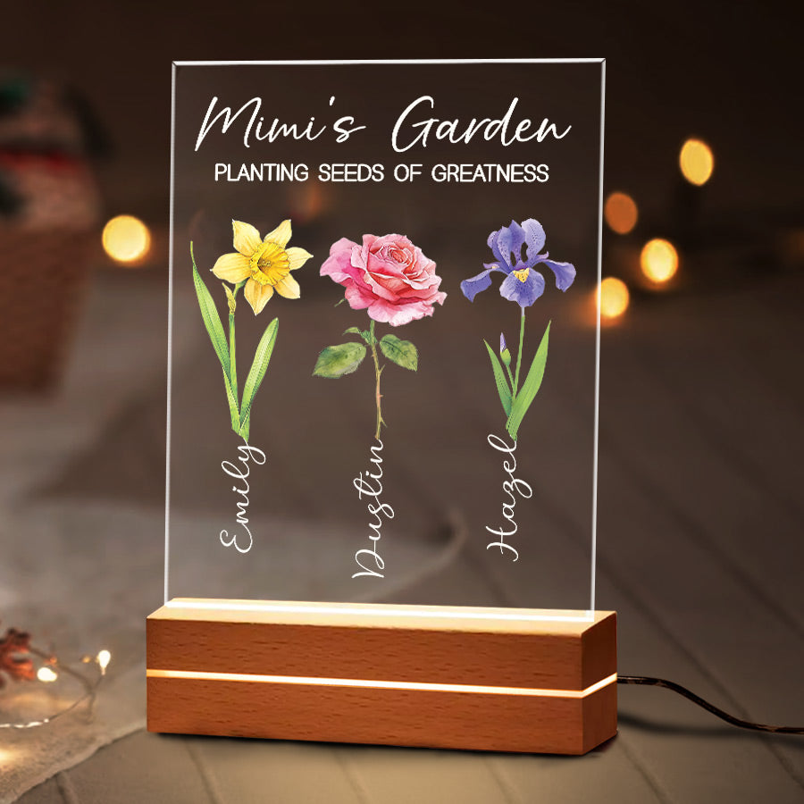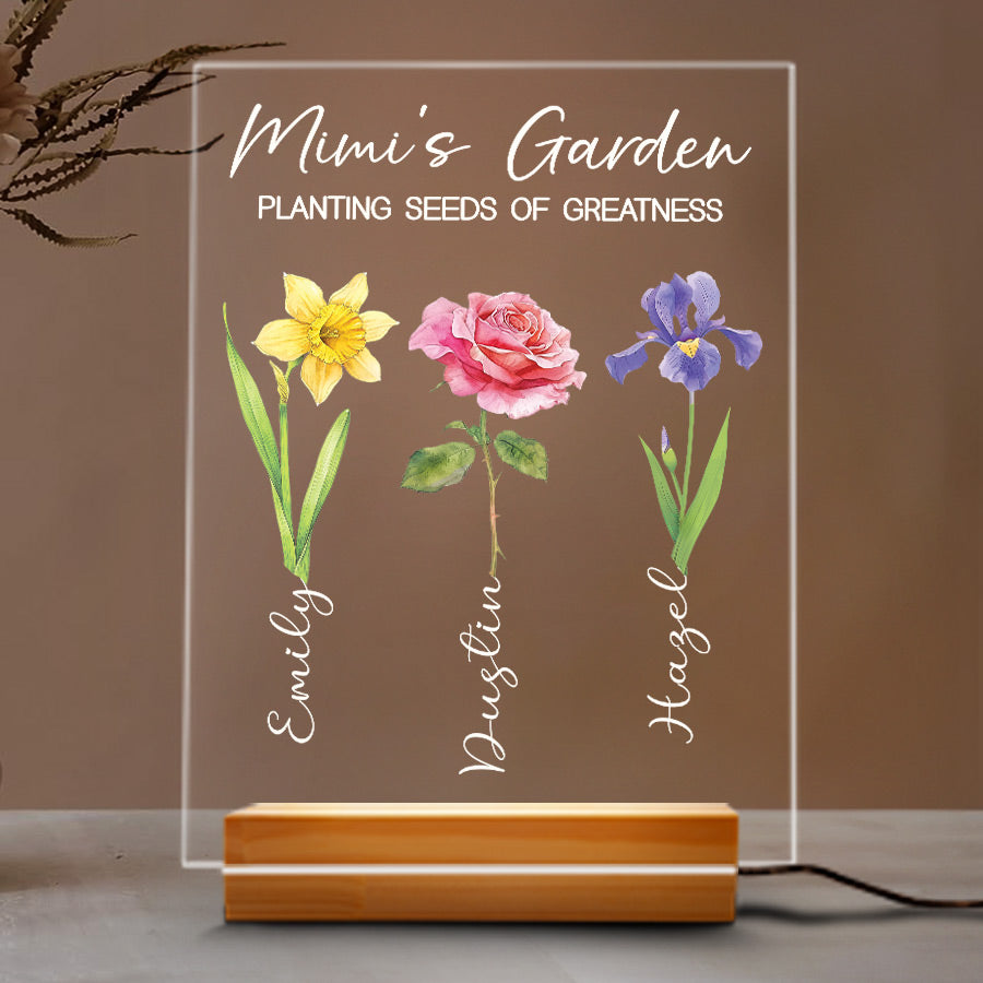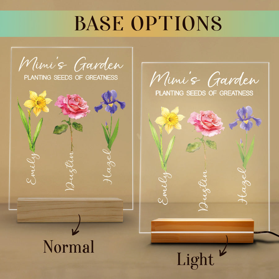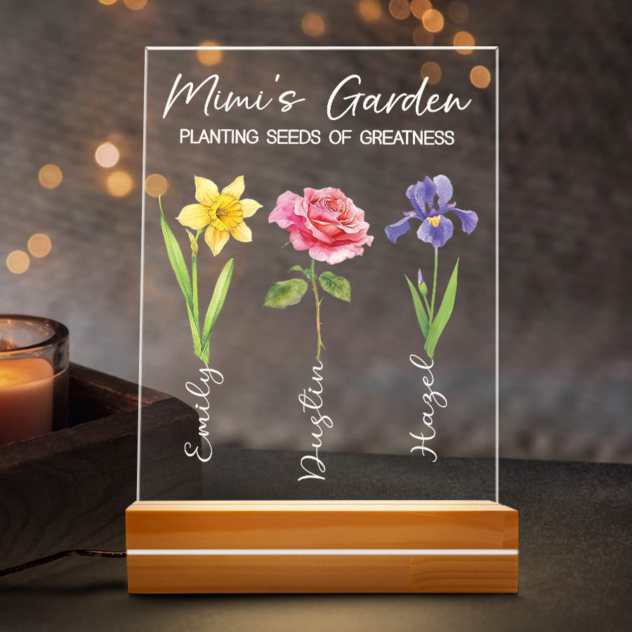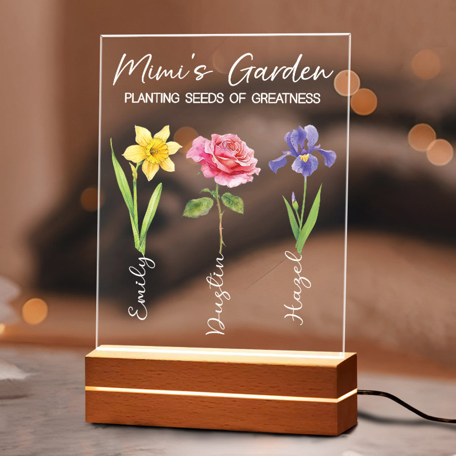 Welcome thoughtful garden art into Grandma's garden with our acrylic plaque. The beautiful personalized grandma gift | personalized mother s day gifts are laser engraved with your child's name and birth month, alongside a detailed illustration of their representative birth month flower. This extraordinary grandma garden gift is more than just a piece of art; it's a heartfelt tribute to the incredible woman who has made a lasting impact on your life.