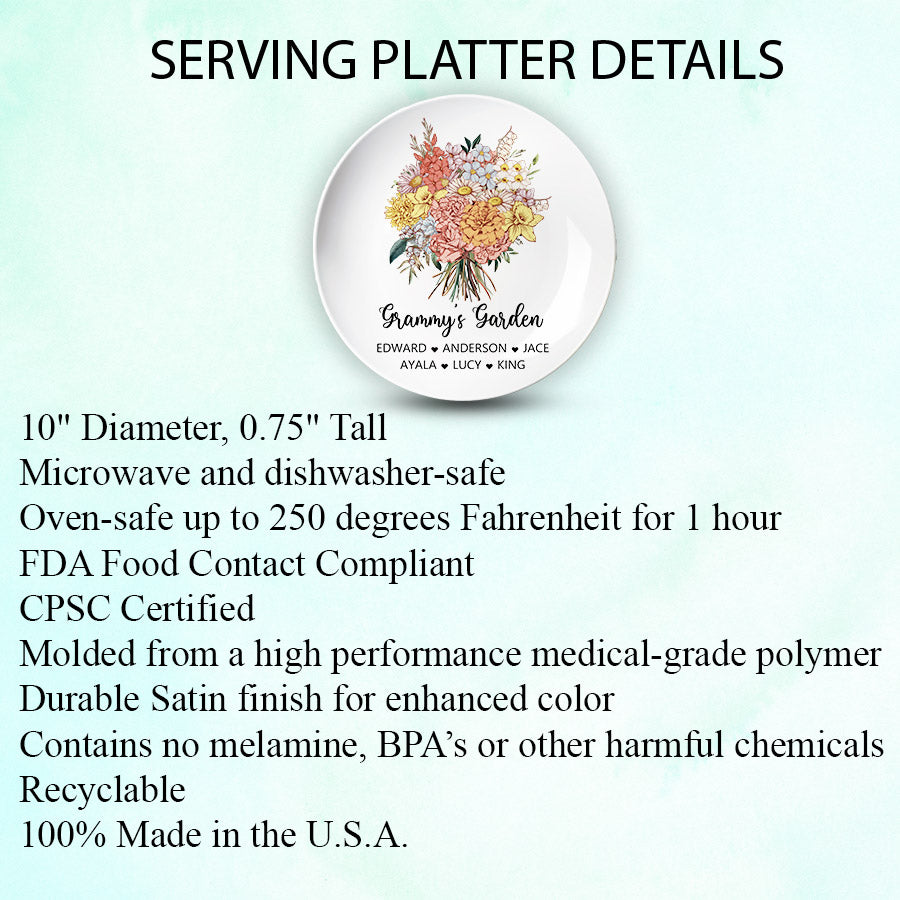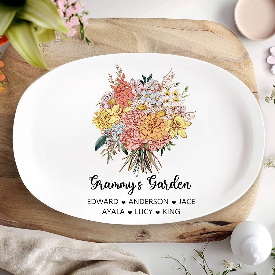 Bring joy to grandma's garden with this one-of-a-kind grill plate that she is sure to treasure. Customize free personalized grandma gift | personalized mother’s day gifts with an assortment of color images representing the birth month flowers of her precious grandchildren. What better way to honor all the memories made in her special outdoor space over the years? This extraordinary grandma garden gift is more than just a piece of art; it's a heartfelt tribute to the incredible woman who has made a lasting impact on your life.