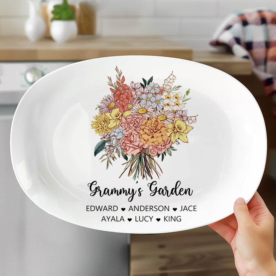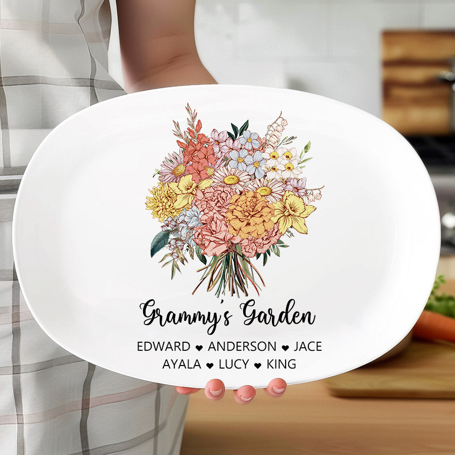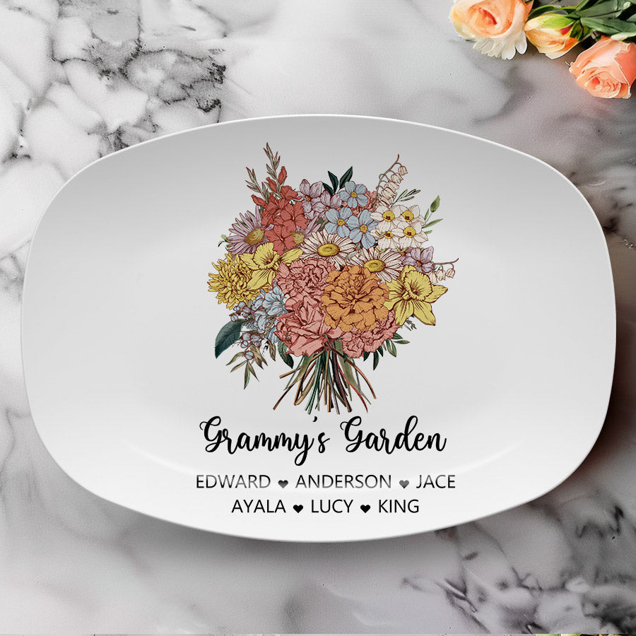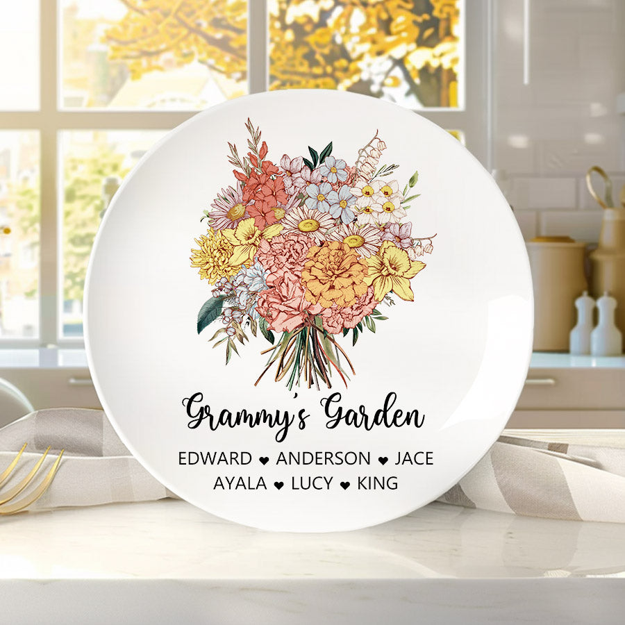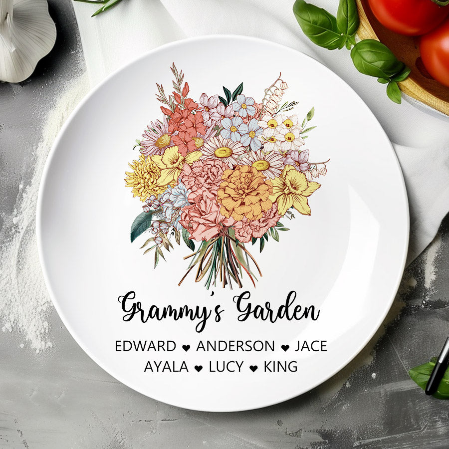 Personalized Gifts Grandmas | Personalized Mother’S Day Gift | Grandma Plates With Grandkid Names | Mimi'S Garden Gift Birth Flower Garden
