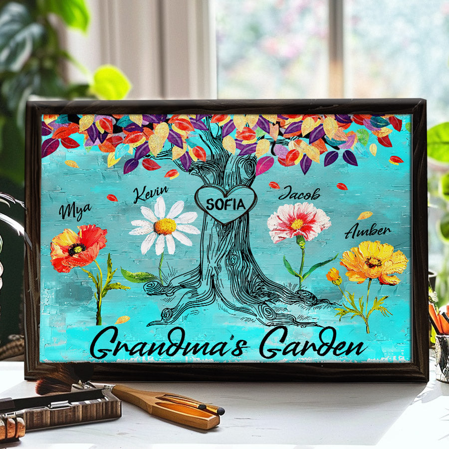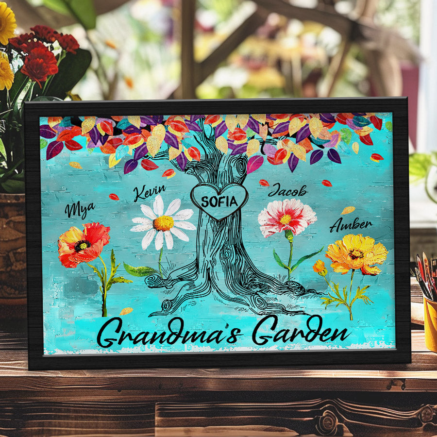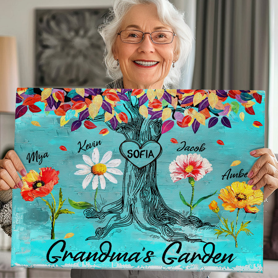 Grandma’S Garden Gifts | Custom Mother'S Day Gifts For Grandma | Grandmas Garden Blanket | Watercolor Birth Flower Wall Art Decor