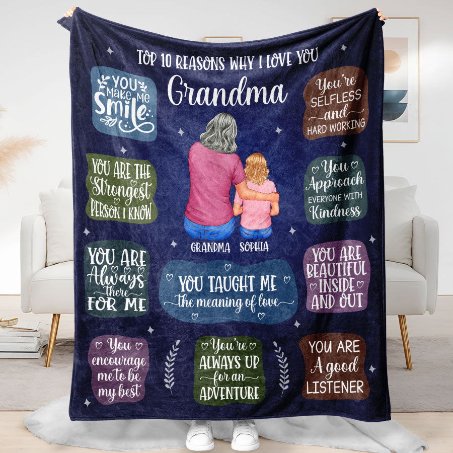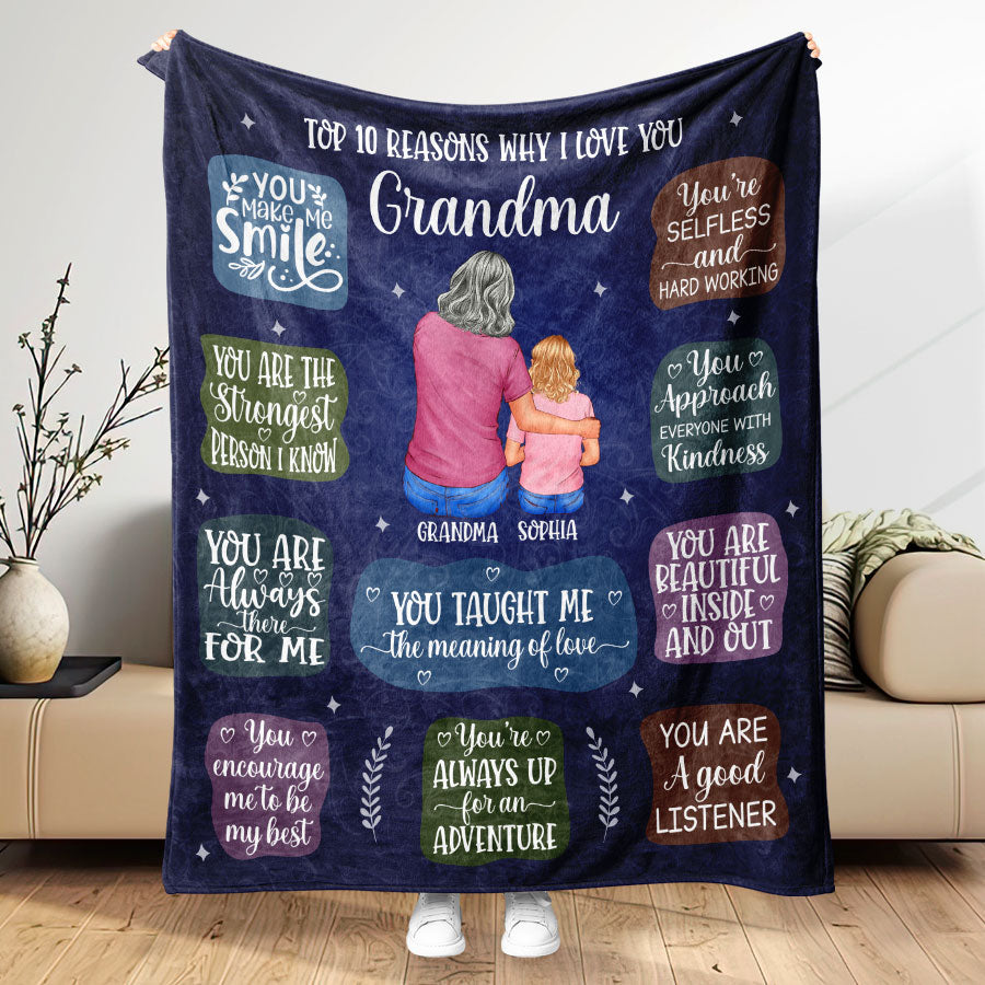 Wrap your grandma in love and warmth with our personalized grandma gifts | mothers day blanket for grandma from granddaughter. This isn't just any ordinary gift – these are heartfelt personalized gifts for grandma that will make her feel cherished and appreciated.
