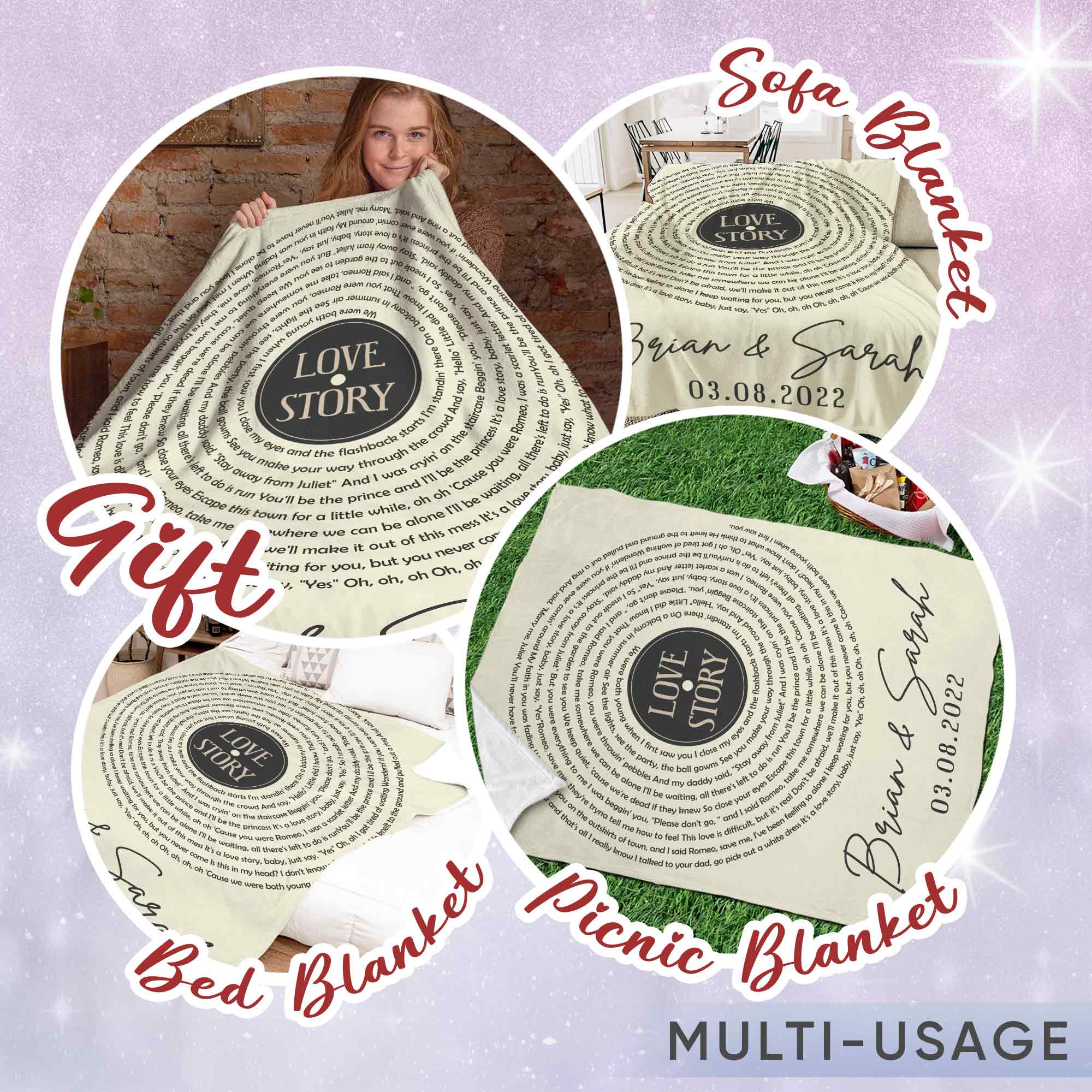 At Magic Exhalation, we understand that everyone has their own unique style and taste. That's why we offer customizable designs for our personalized lyrics blankets, allowing you to personalize them with names, anniversaries, or even photographs.