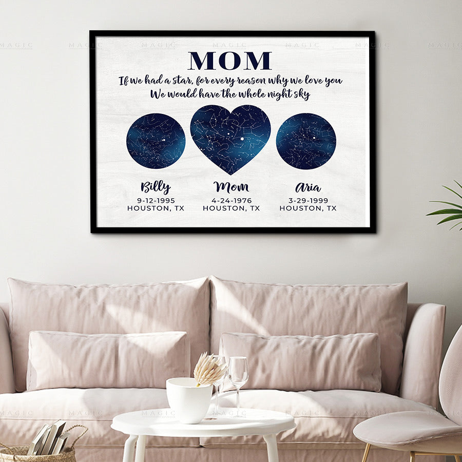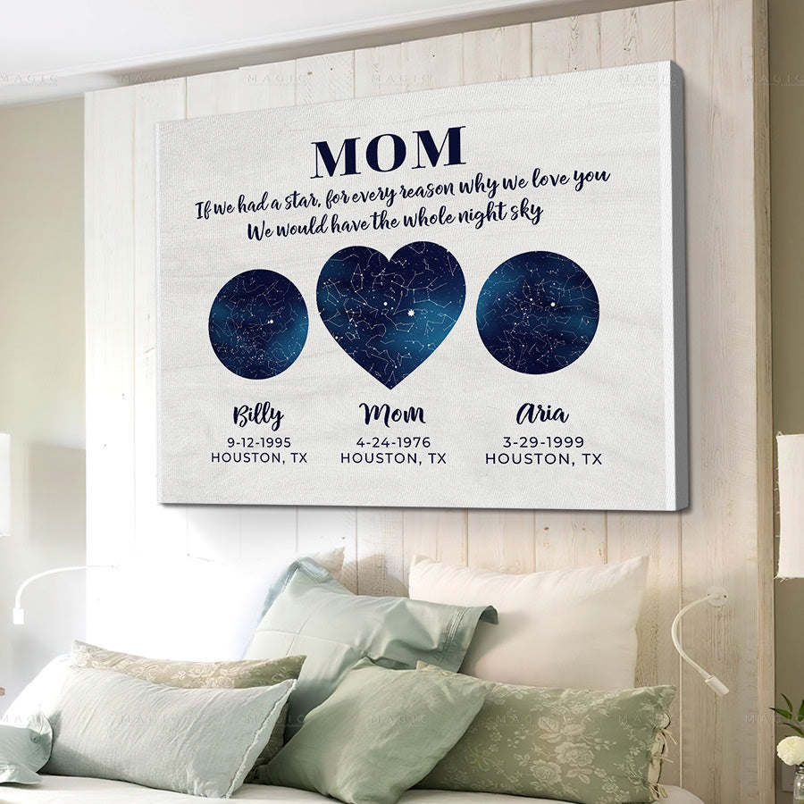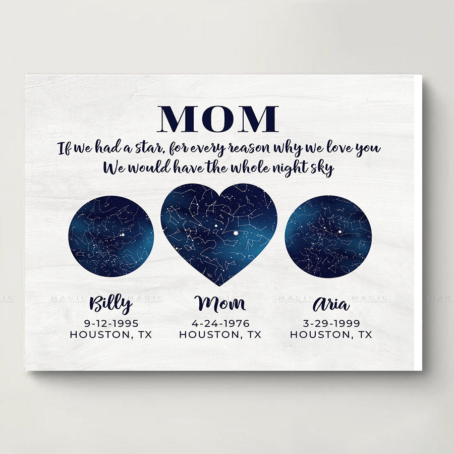 Personalized Mothers Day Canvas | Custom Star Map by Date Prints