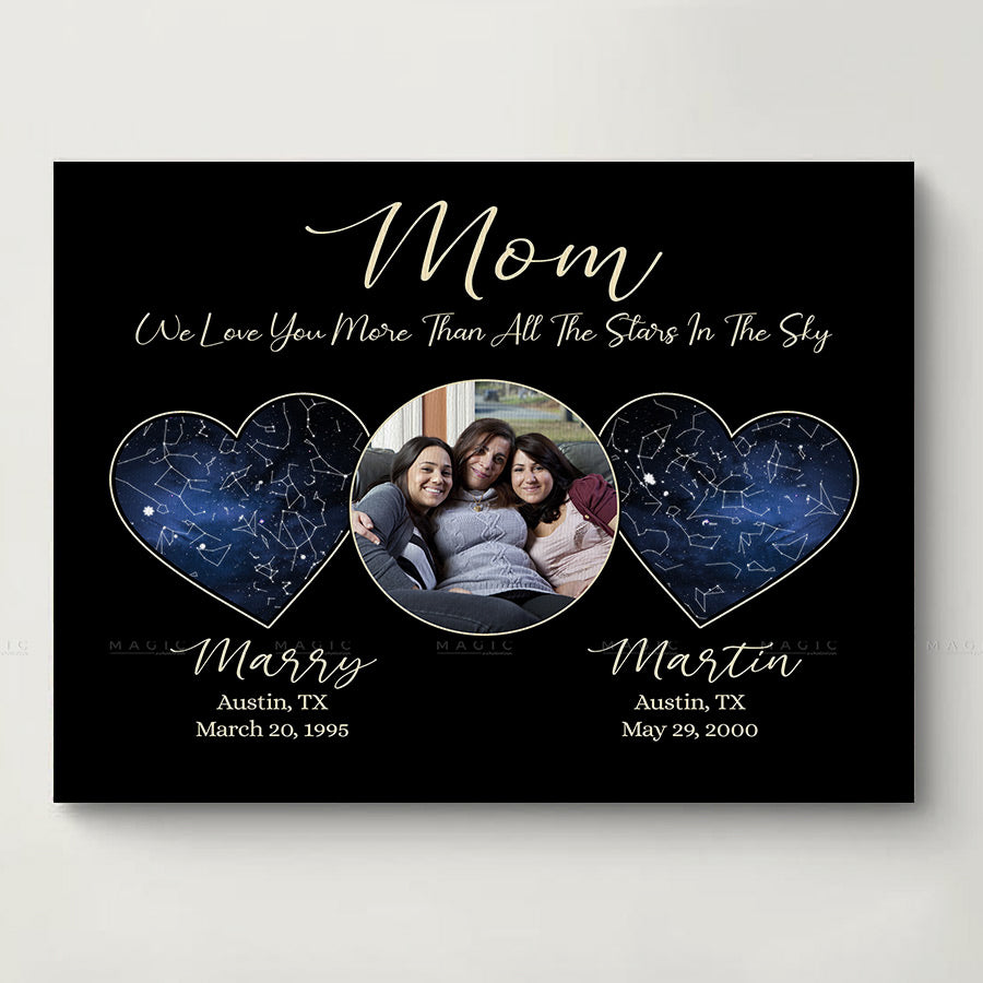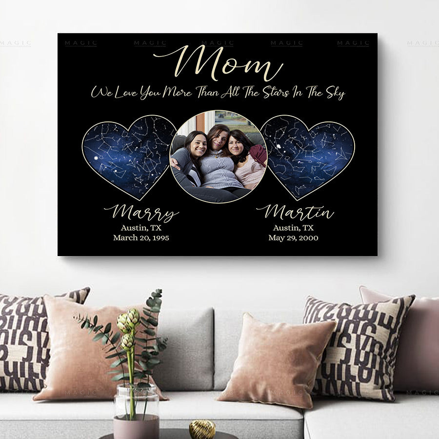 Custom Mothers Day Gifts | Mothers Day Canvas | Custom Star Map Canvas The Day You Became My Mom