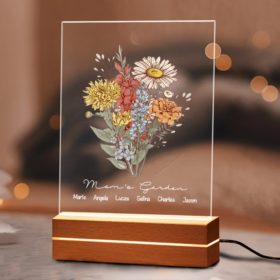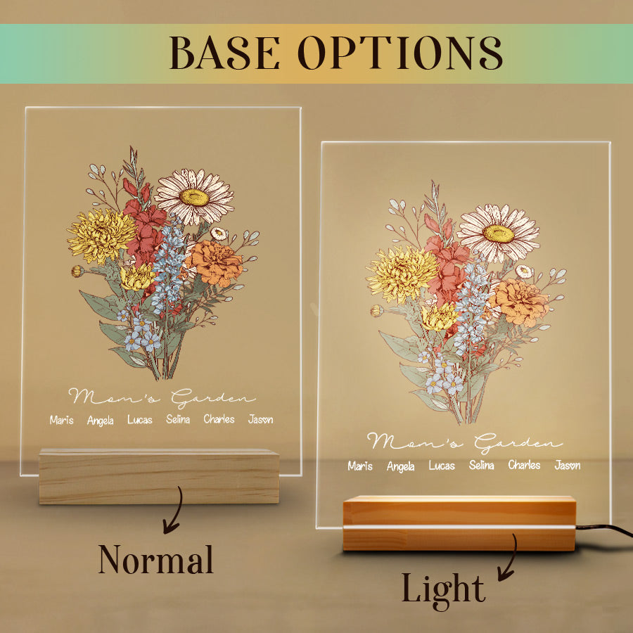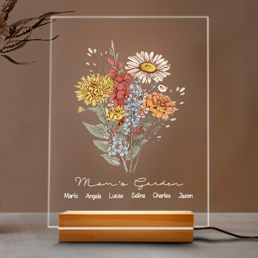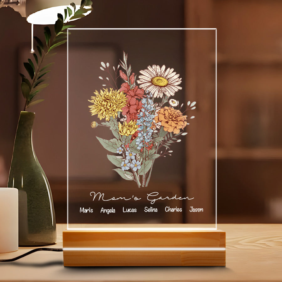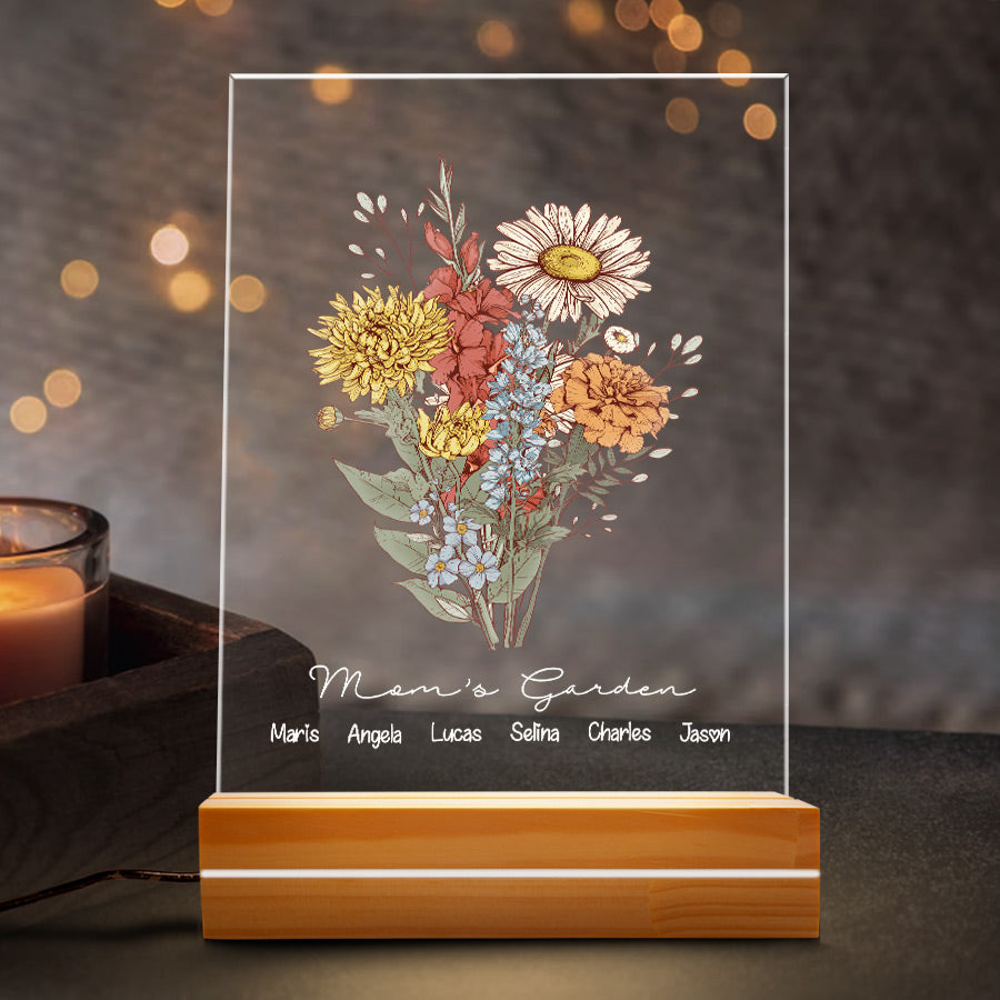 Give your mom something she'll love with this custom acrylic plaque. Order today and get personalized mother’s day gifts | custom mom plaque with birth flower garden delivered in time for Mother's Day! Buy now.
