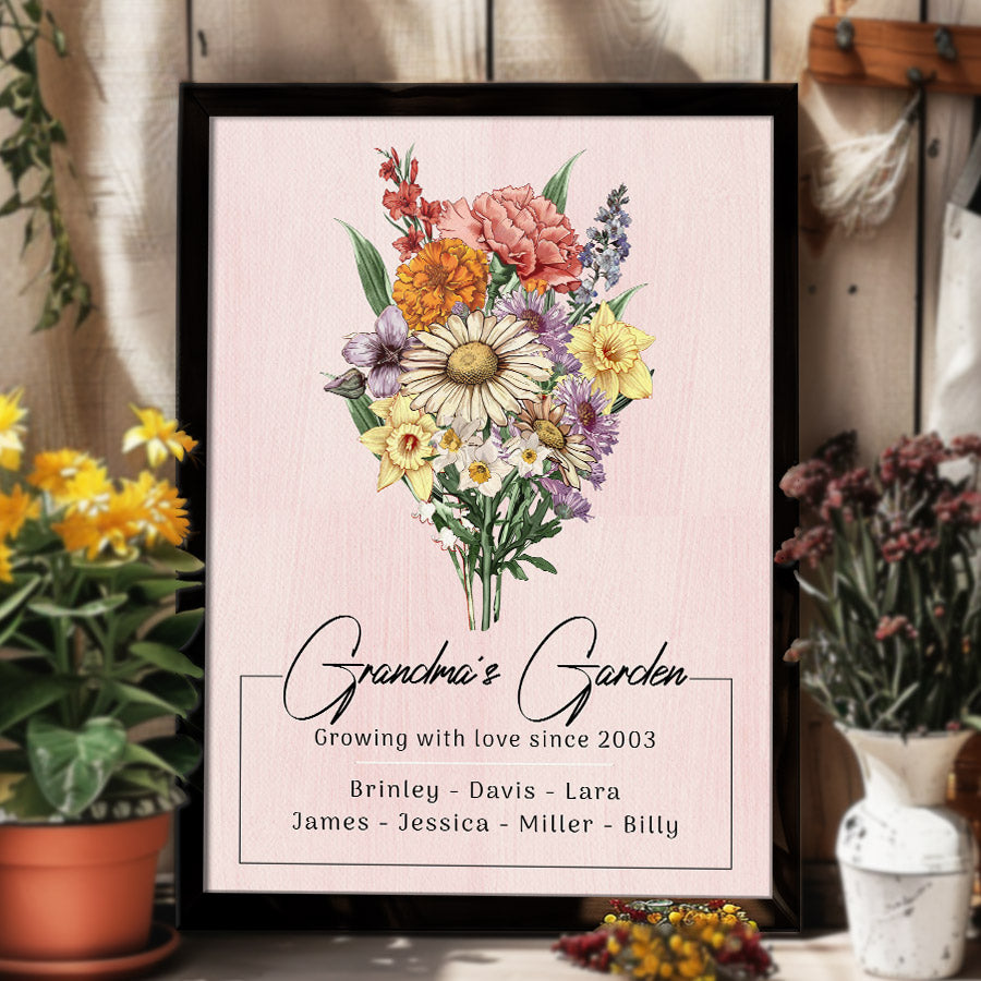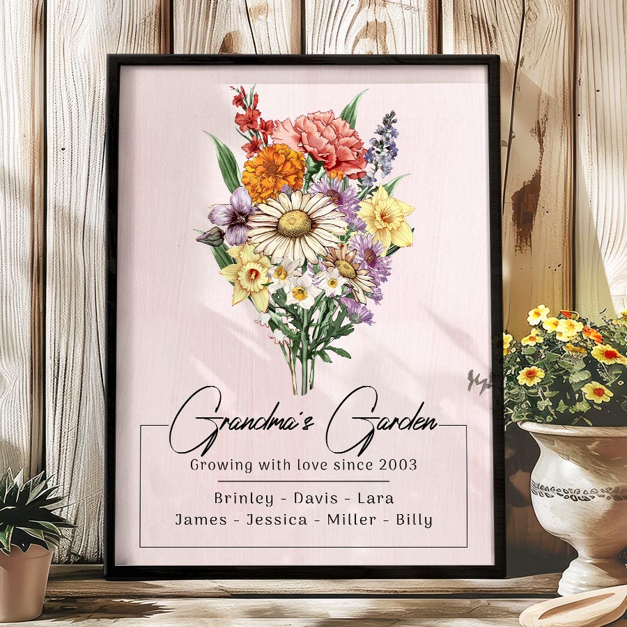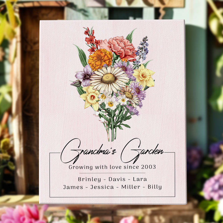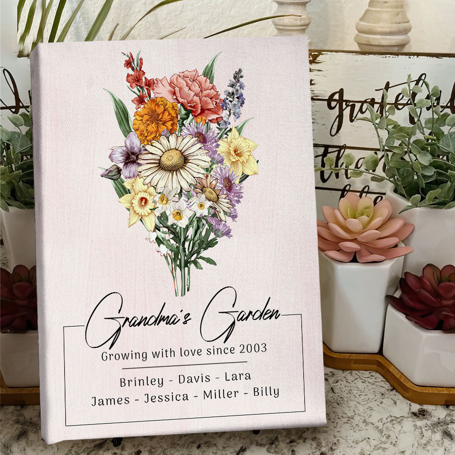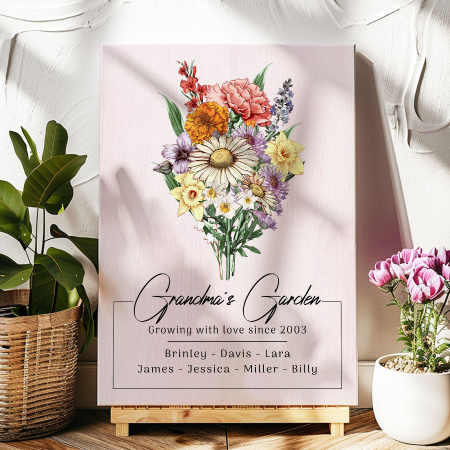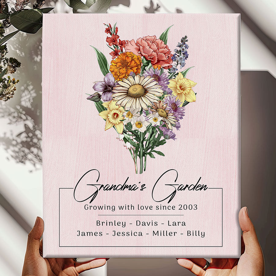 Personalized Gift Grandma | Personalised Grandma Gifts For Mothers Day | Custom Grandmas Garden Canvas | Birth Flower Oil Painting Style Art