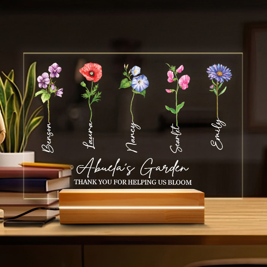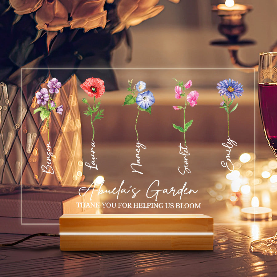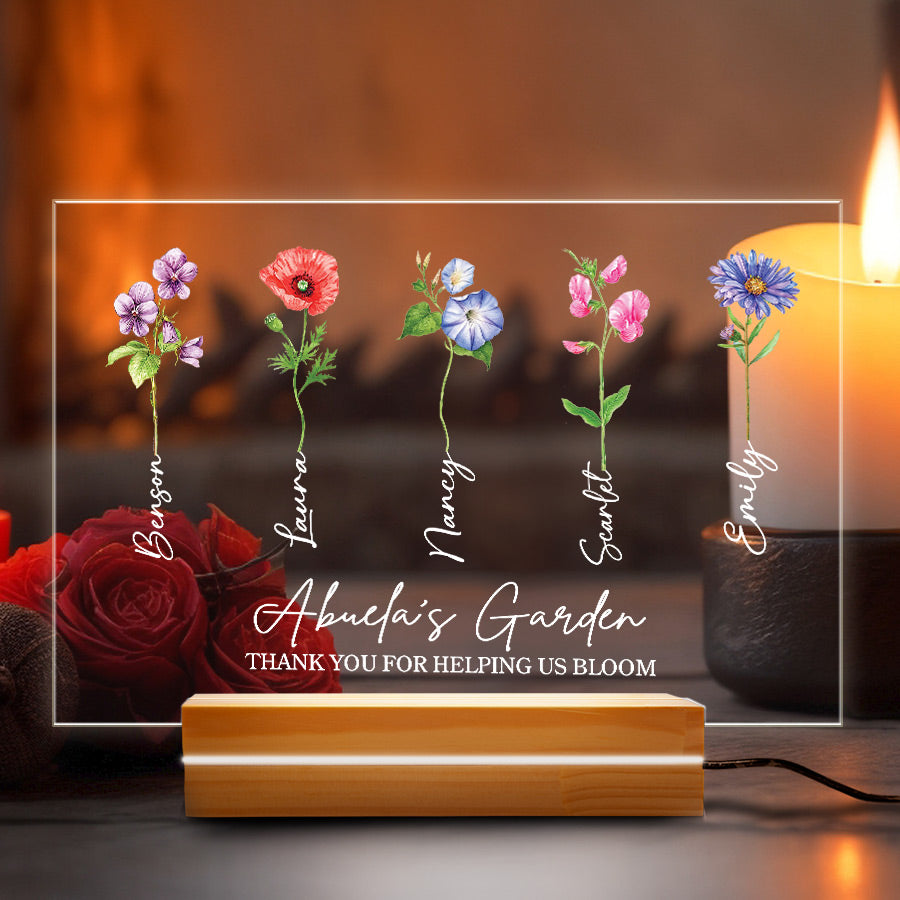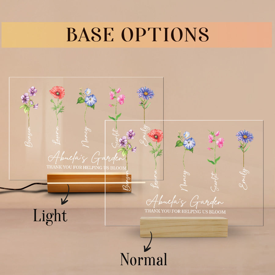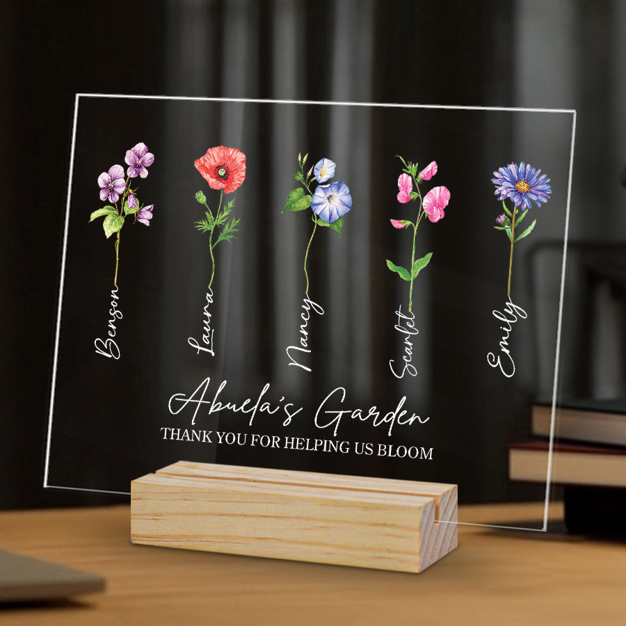 Welcome thoughtful garden art into Grandma's garden with our acrylic plaque. The beautiful personalized mother’s day gifts for grandma | grandma gifts personalized are laser engraved with your child's name and birth month, alongside a detailed illustration of their representative birth month flower. This extraordinary grandma garden gift is more than just a piece of art; it's a heartfelt tribute to the incredible woman who has made a lasting impact on your life.