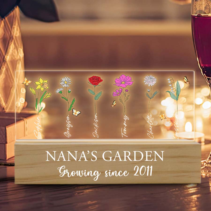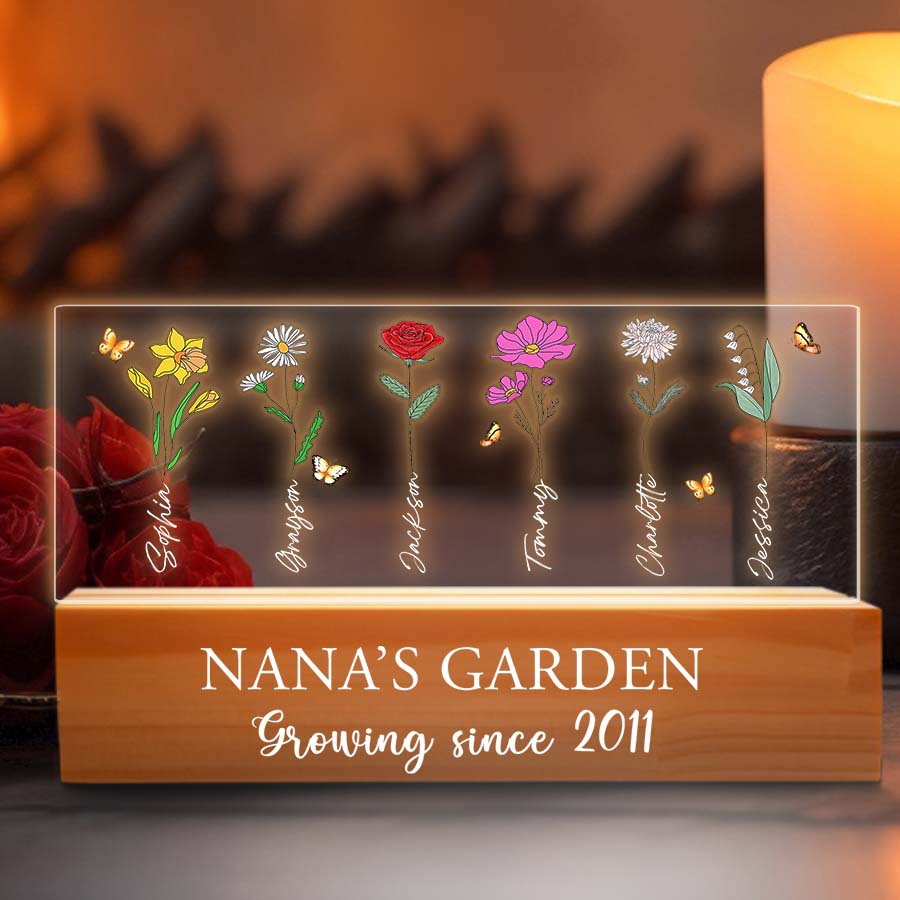 Our free customization for all personalized mothers day gifts for nana | custom nana gifts allows you to effortlessly personalize the plaque with your child's name and birth month flower. What better way to show Grandma how much you appreciate all she does than with this thoughtful, lasting tribute to her love of family and gardening? Her backyard sanctuary will become a celebration of love that lasts for years, as future generations are added to her flower plaque family.