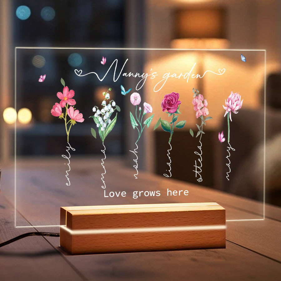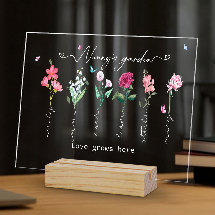 Our free customization for all personalized mothers day gifts for nanny | grandma's garden gift allows you to effortlessly personalize the plaque with your child's name and birth month flower. What better way to show Grandma how much you appreciate all she does than with this thoughtful, lasting tribute to her love of family and gardening? Her backyard sanctuary will become a celebration of love that lasts for years, as future generations are added to her flower plaque family.