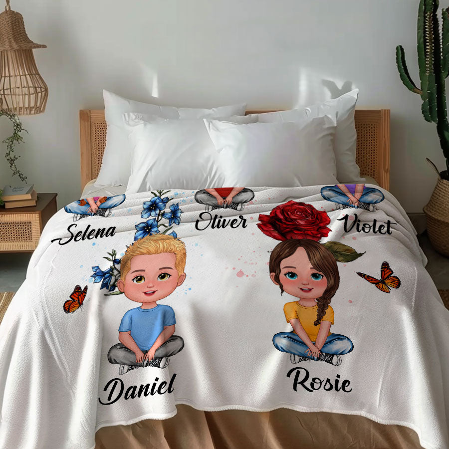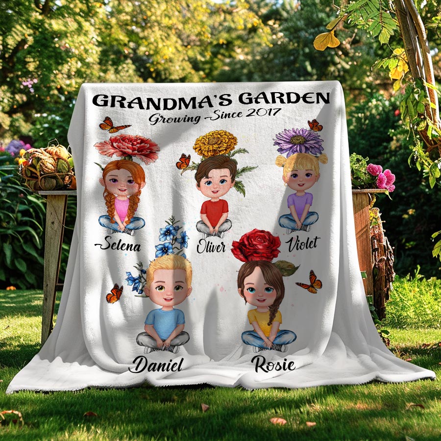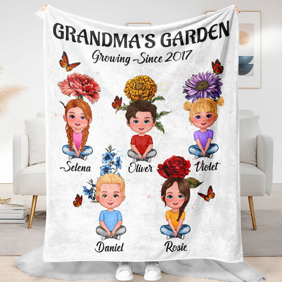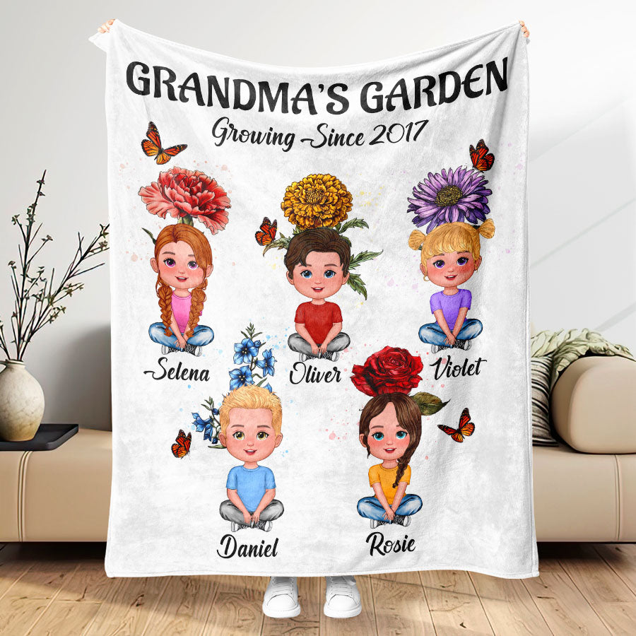 Mothers Day Personalised Gifts For Grandma | Grandma Blanket With Grandkids Names | Custom Grandma'S Garden Blanket