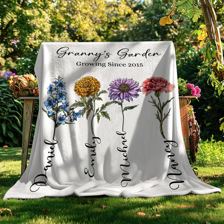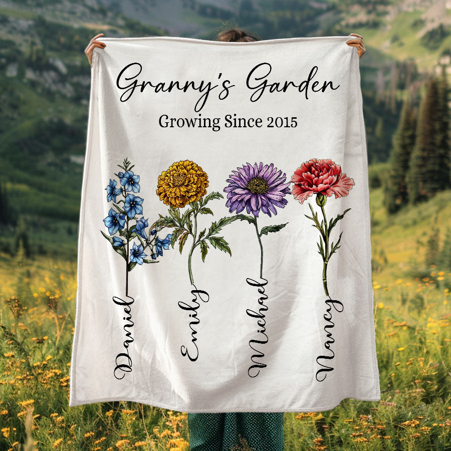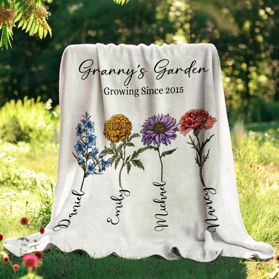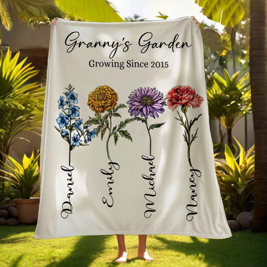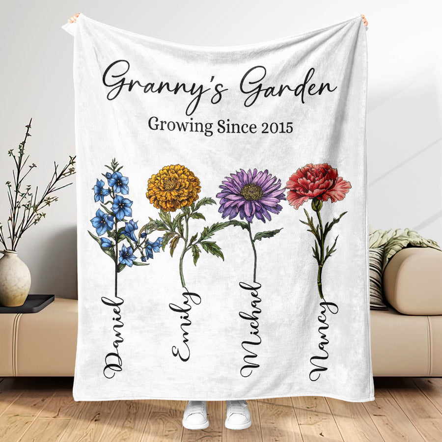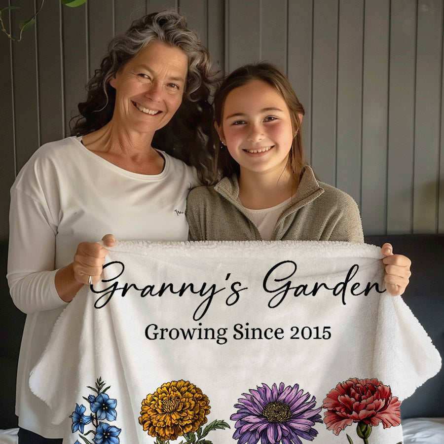 Grandma’S Garden Blanket | Personalized Mother’S Day Gifts Grandma | Grandma Blanket | Abuela Garden Thank You For Helping Us Bloom Spainish