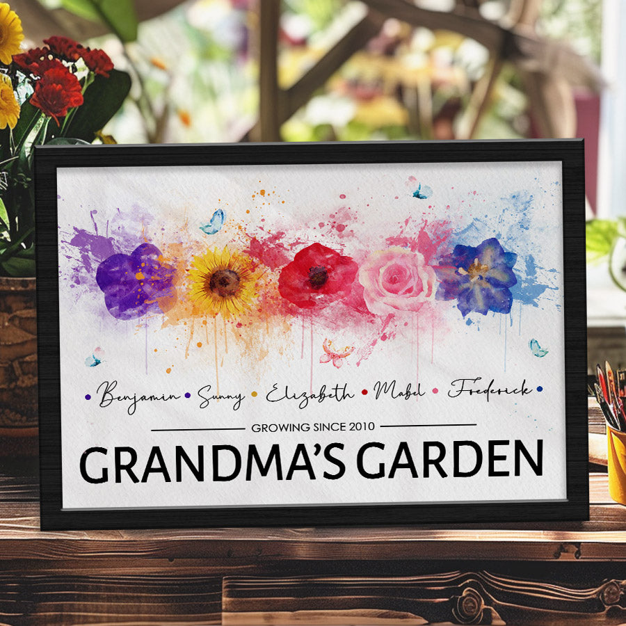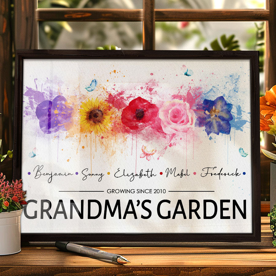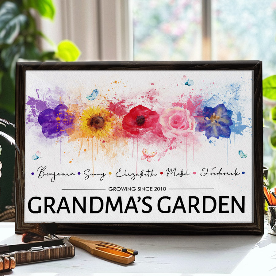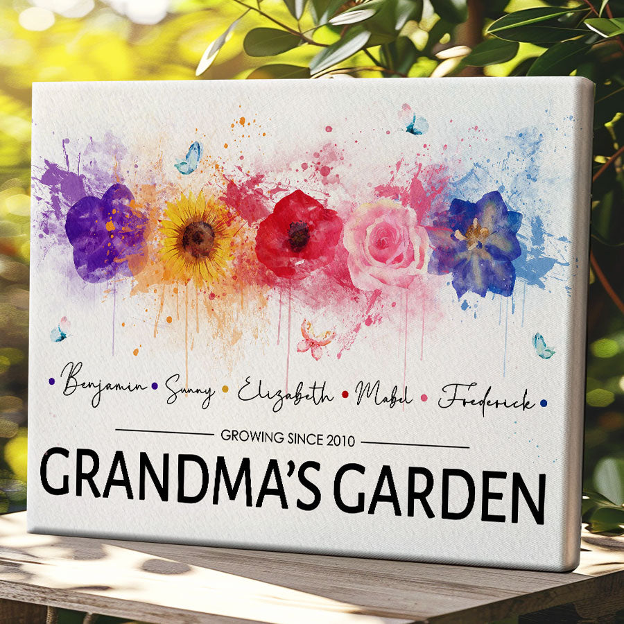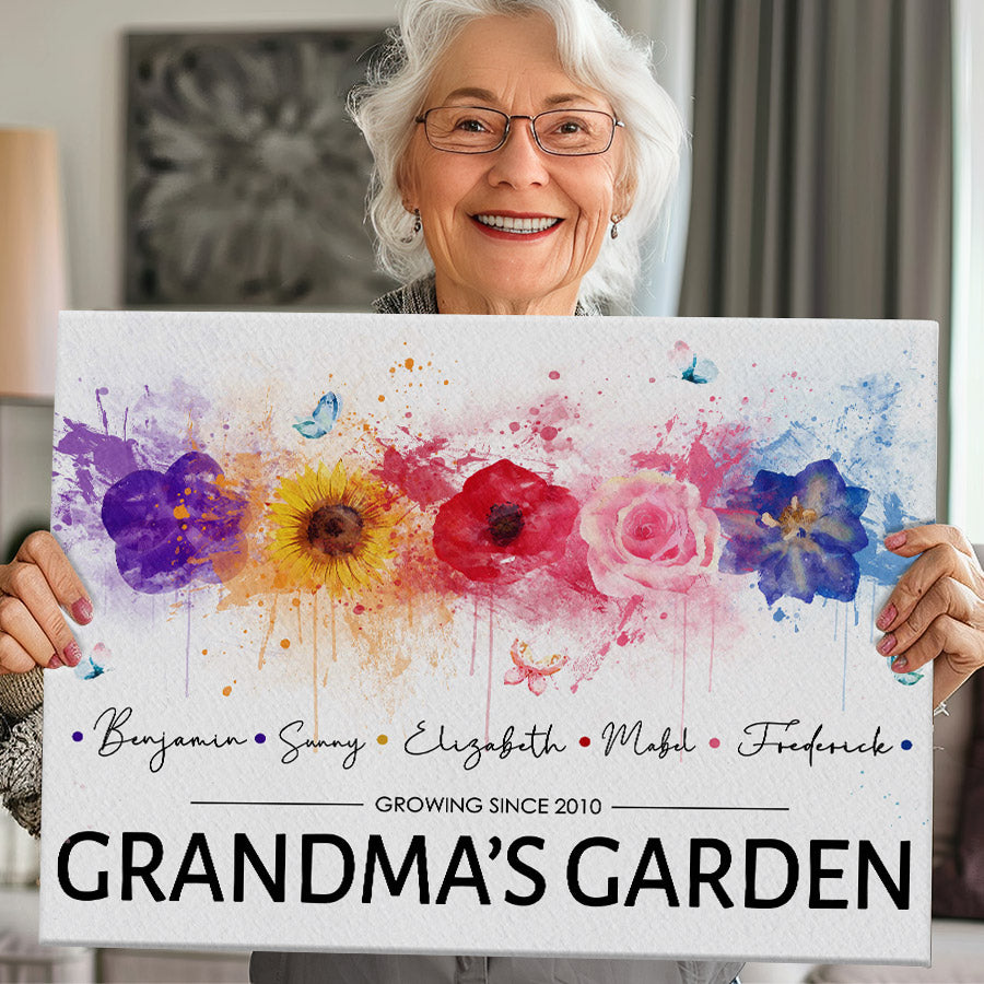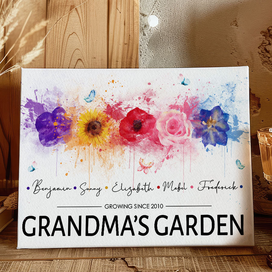Grandma’S Garden Canvas | Personalized Mother’S Day Gifts Grandma | Grandma'S Garden Birth Month Flowers Print With Watercolor Style