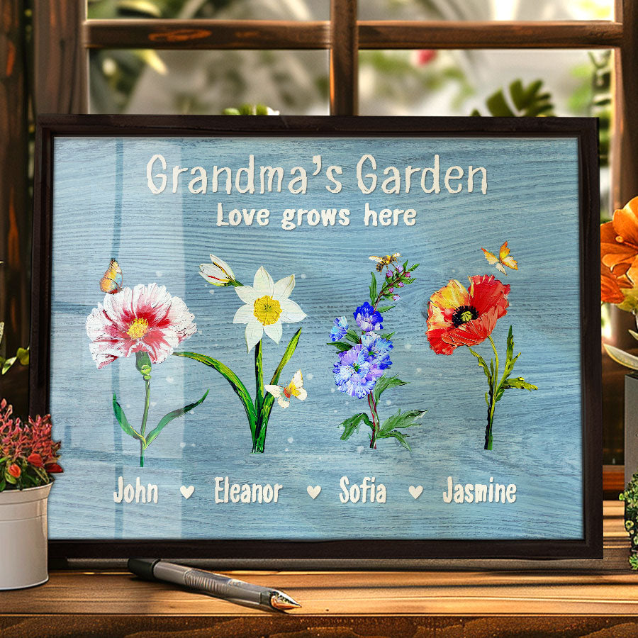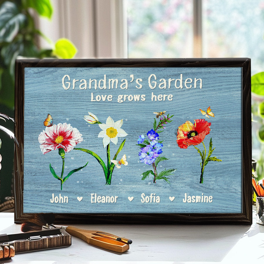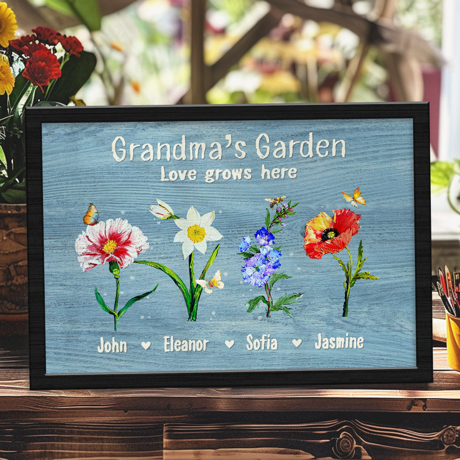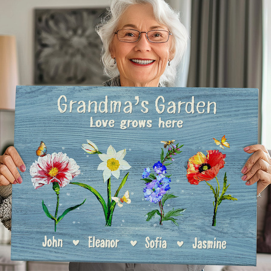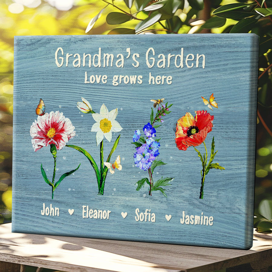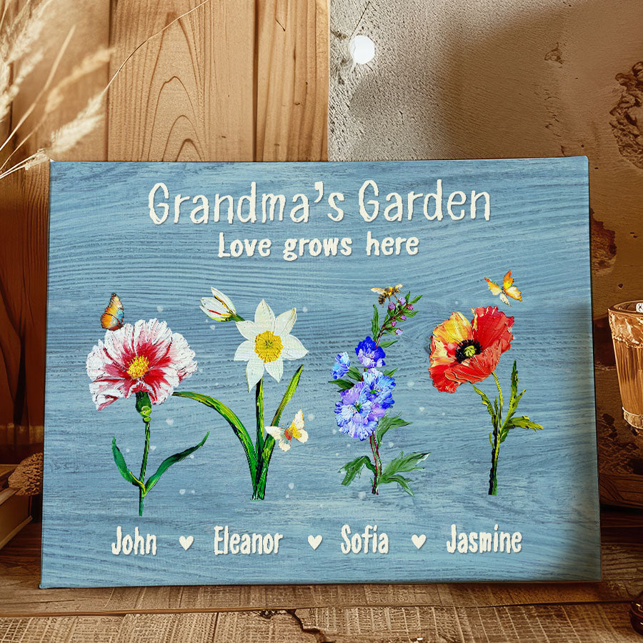 Personalized Grandma Gifts | Personalised Grandma Gifts For Mothers Day | Grandma'S Garden Canvas With Oil Painting Birth Flower Garden